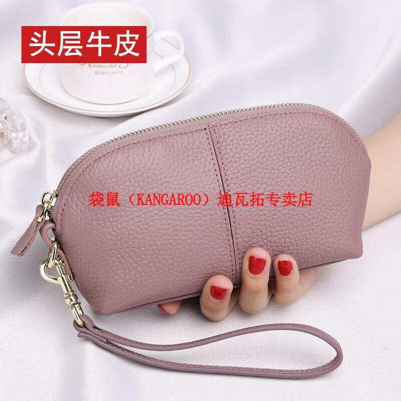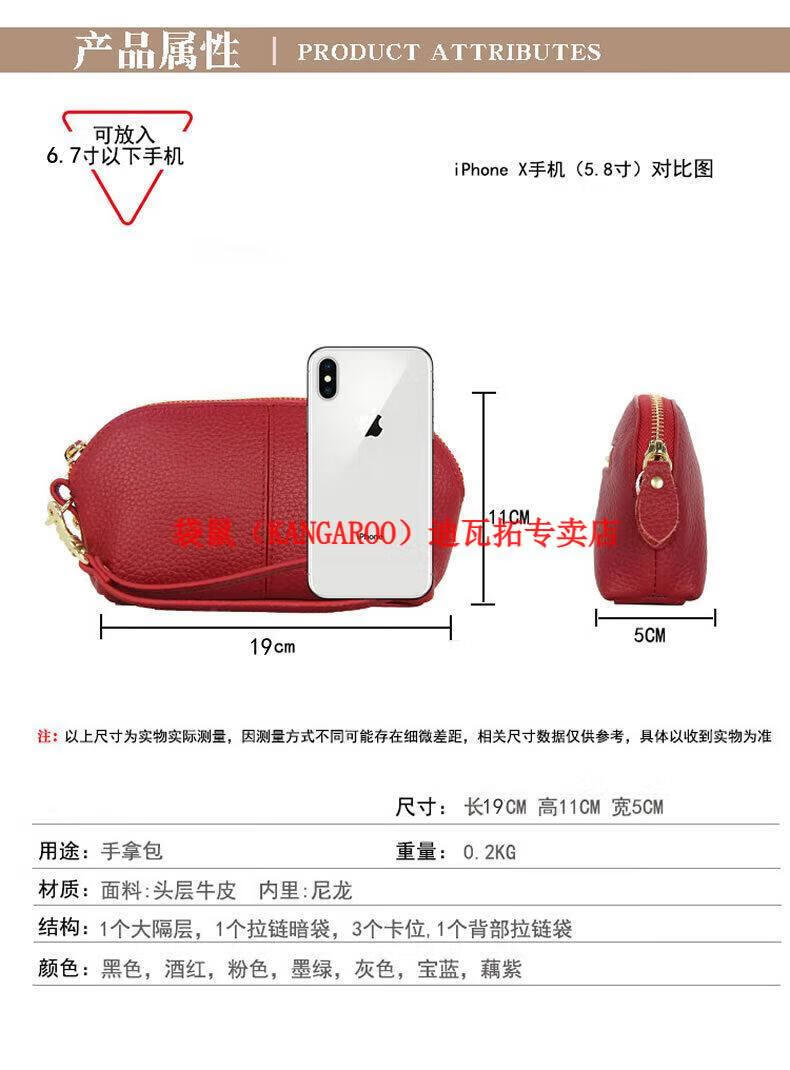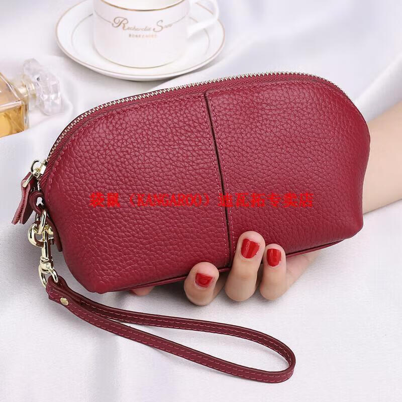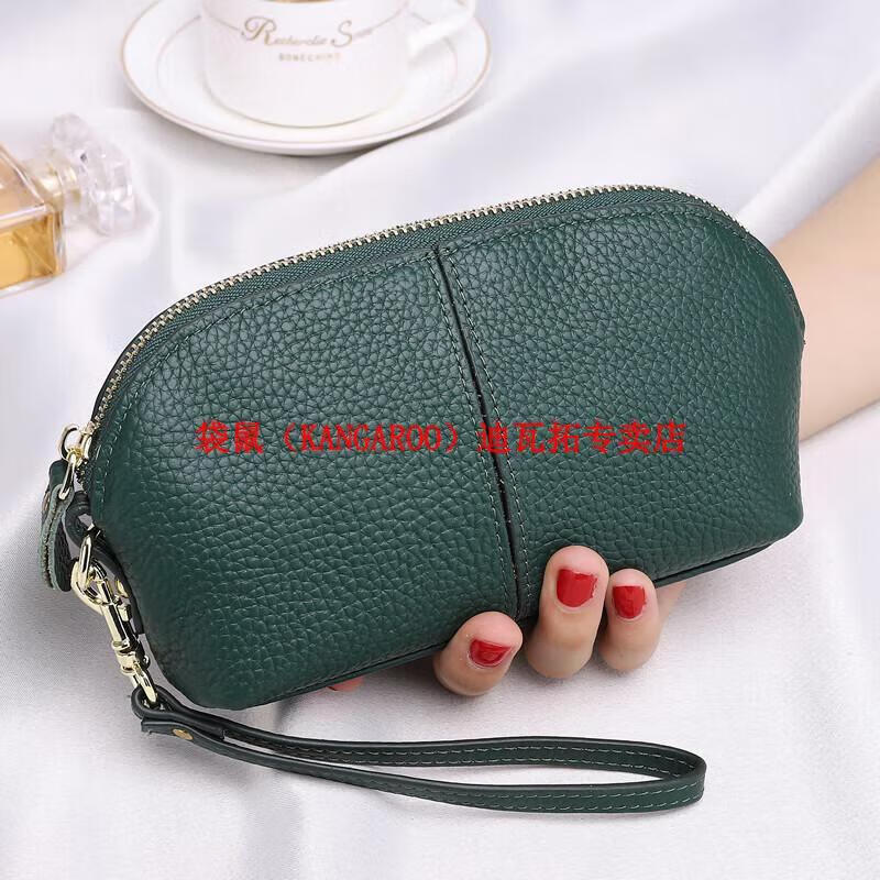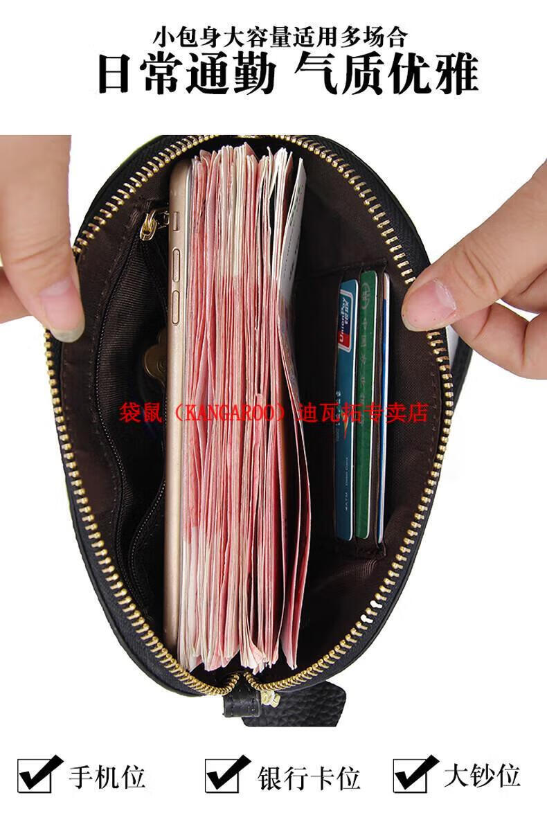 Kangaroo (KANGAROO) genuine leather clutch bag for women 2025 new fashion simple cowhide soft leather mother large capacity mobile phone coin purse long black