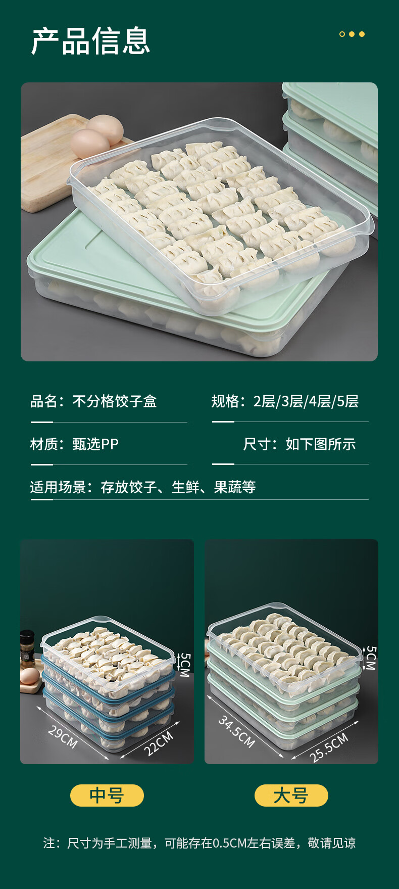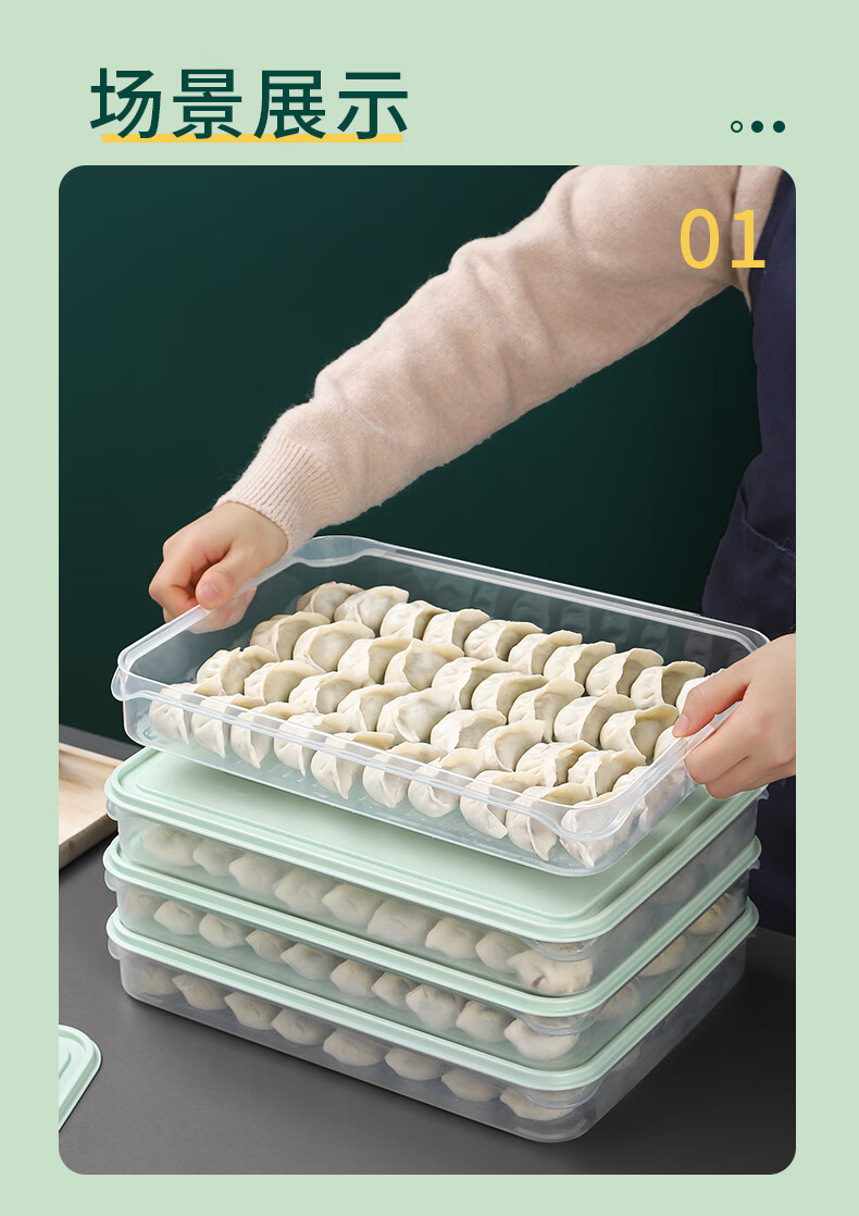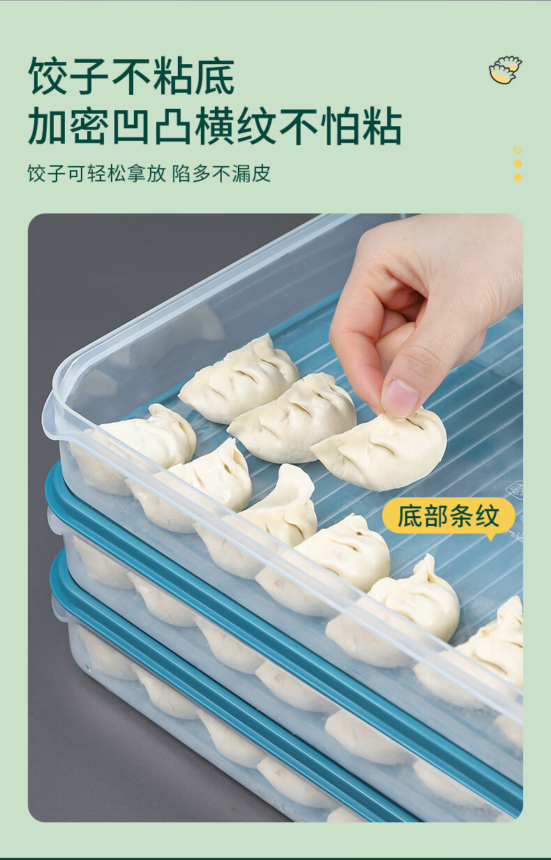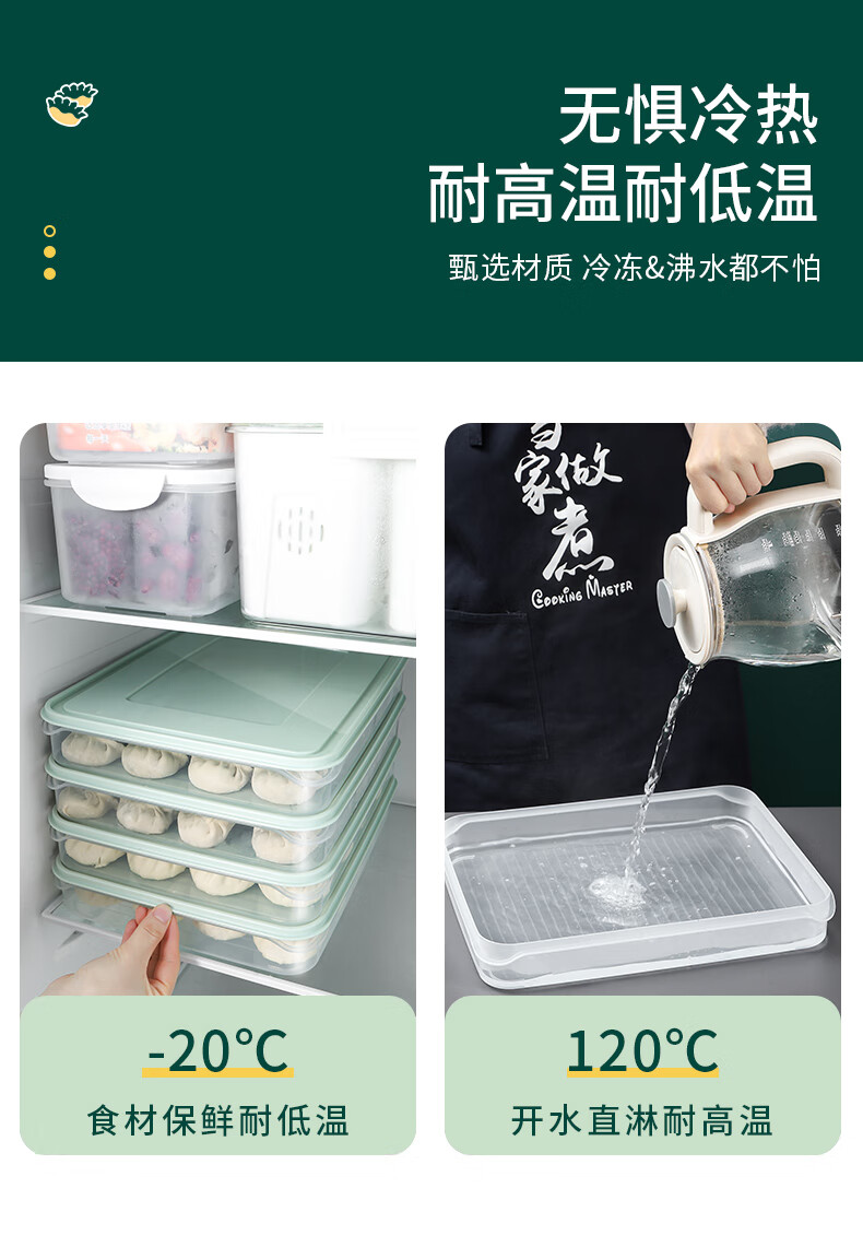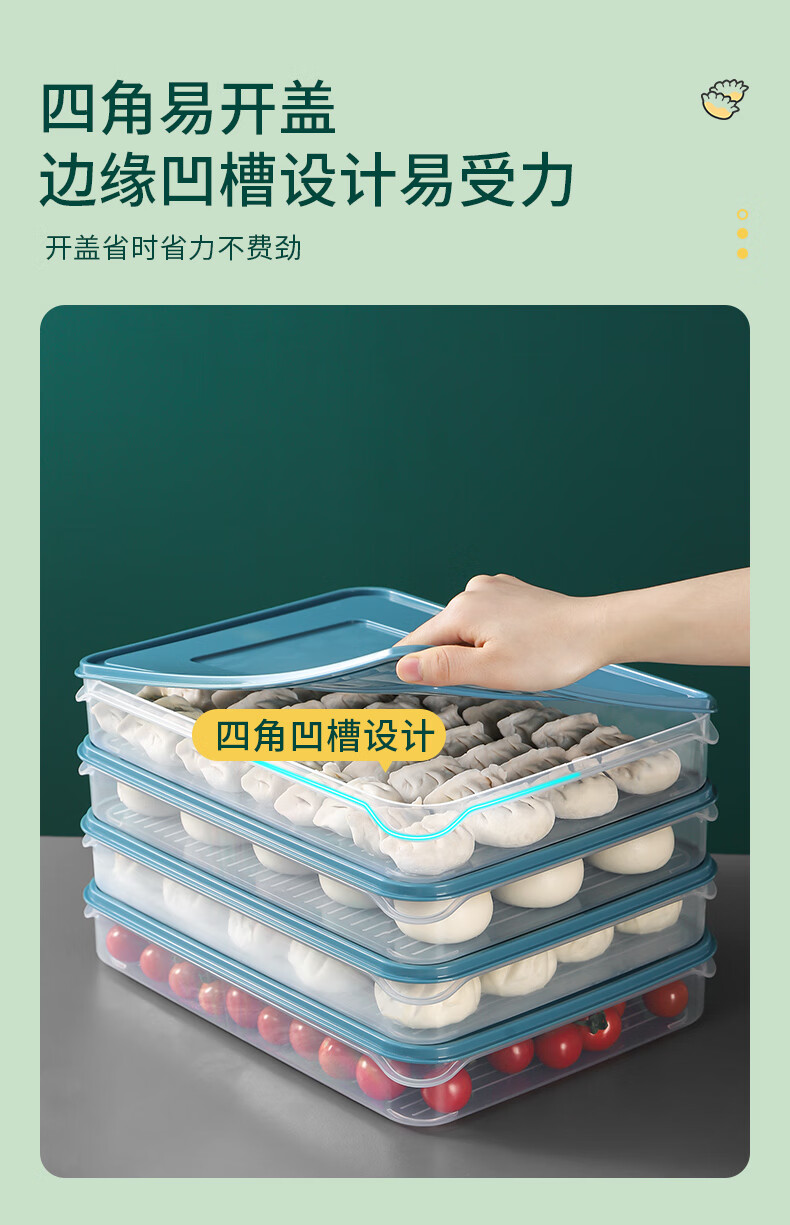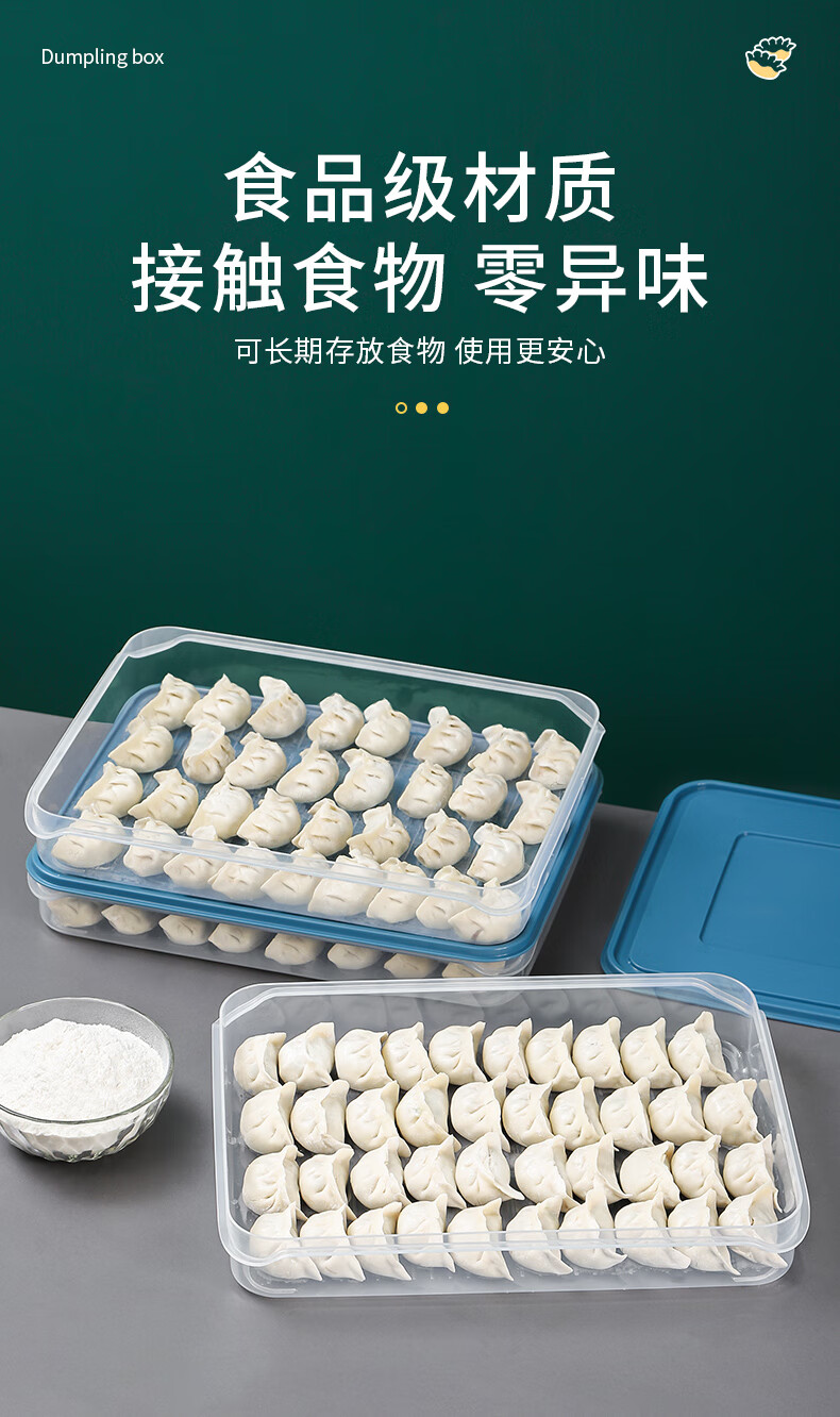 MZXM German imported quality dumpling storage box for refrigerator, food-grade freezing special box for dumplings, quick-frozen wontons, upgraded height + easy-open lid, deep sea blue