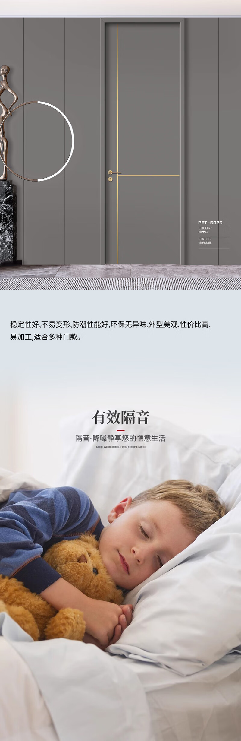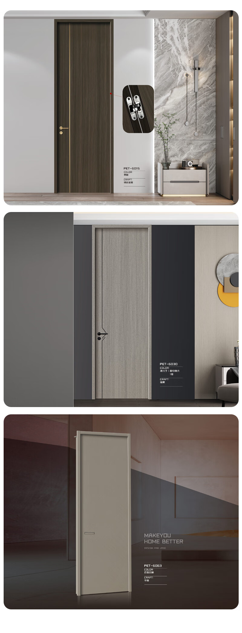 Modern wooden door PET-6068 bedroom door interior door soundproof wooden door