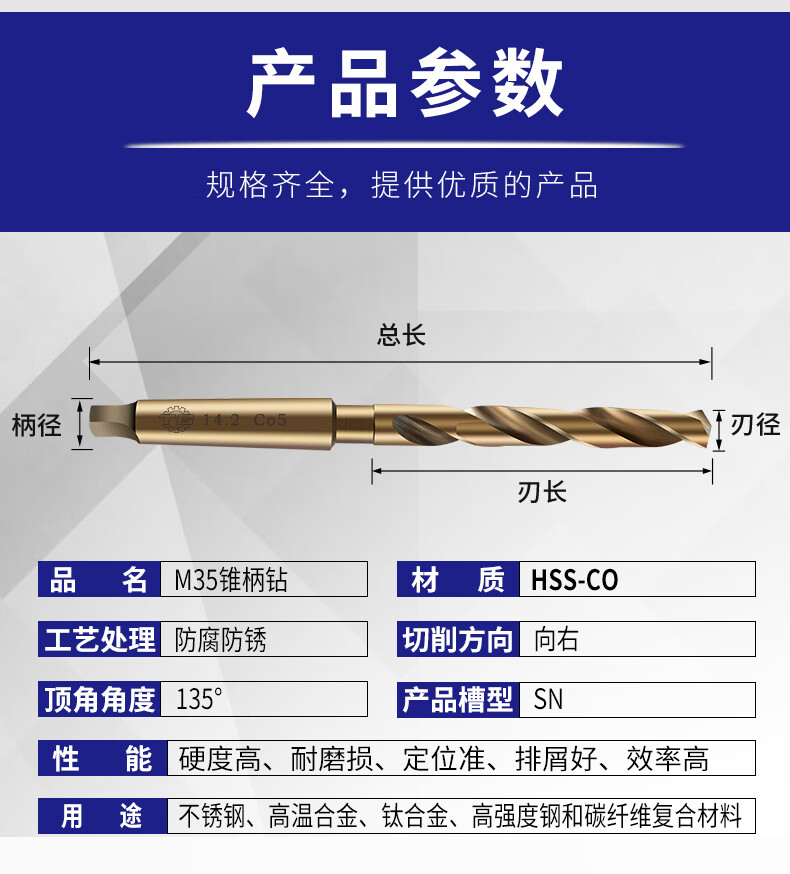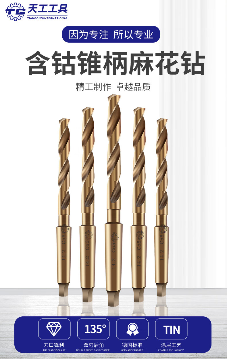 Tiangong (TIANGONG) M35 cobalt-containing Morse taper shank twist drill bit stainless steel special metal drilling steel super hard 14/18 17.8mm