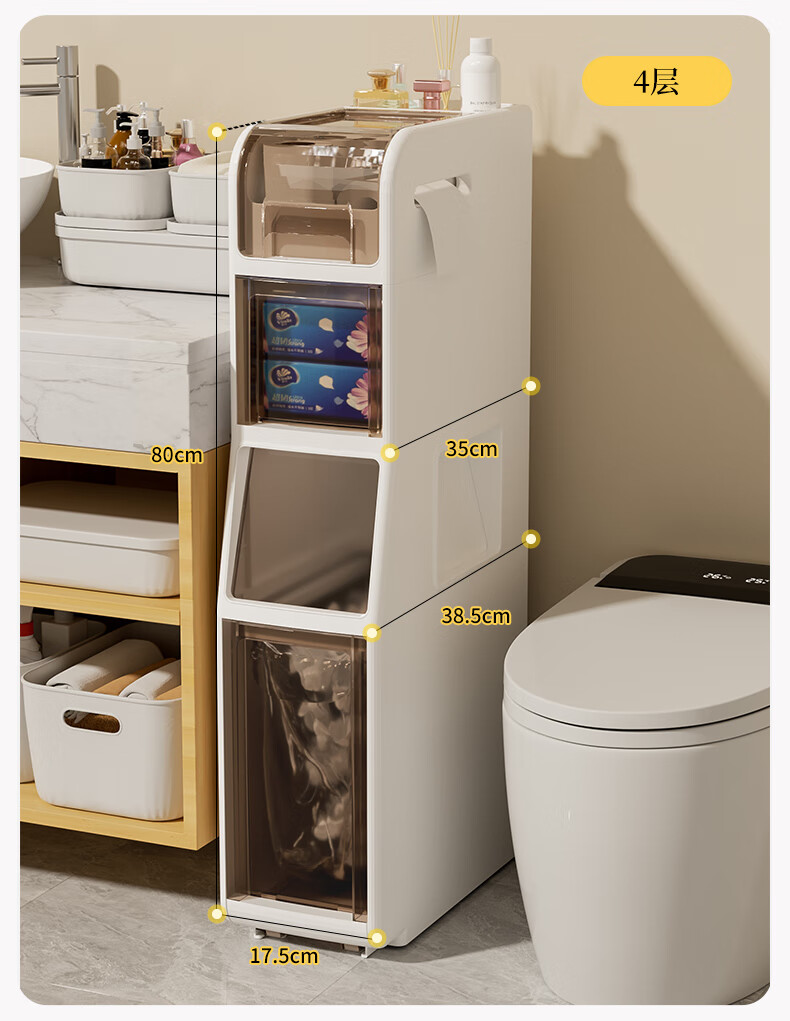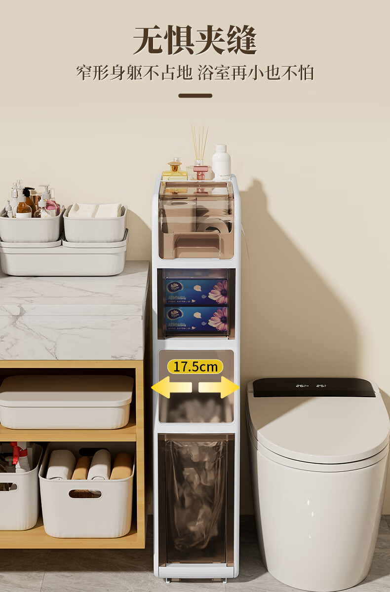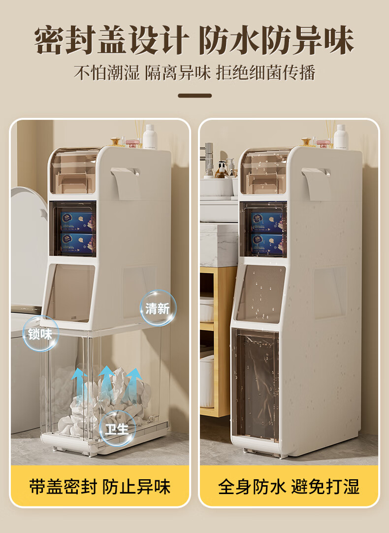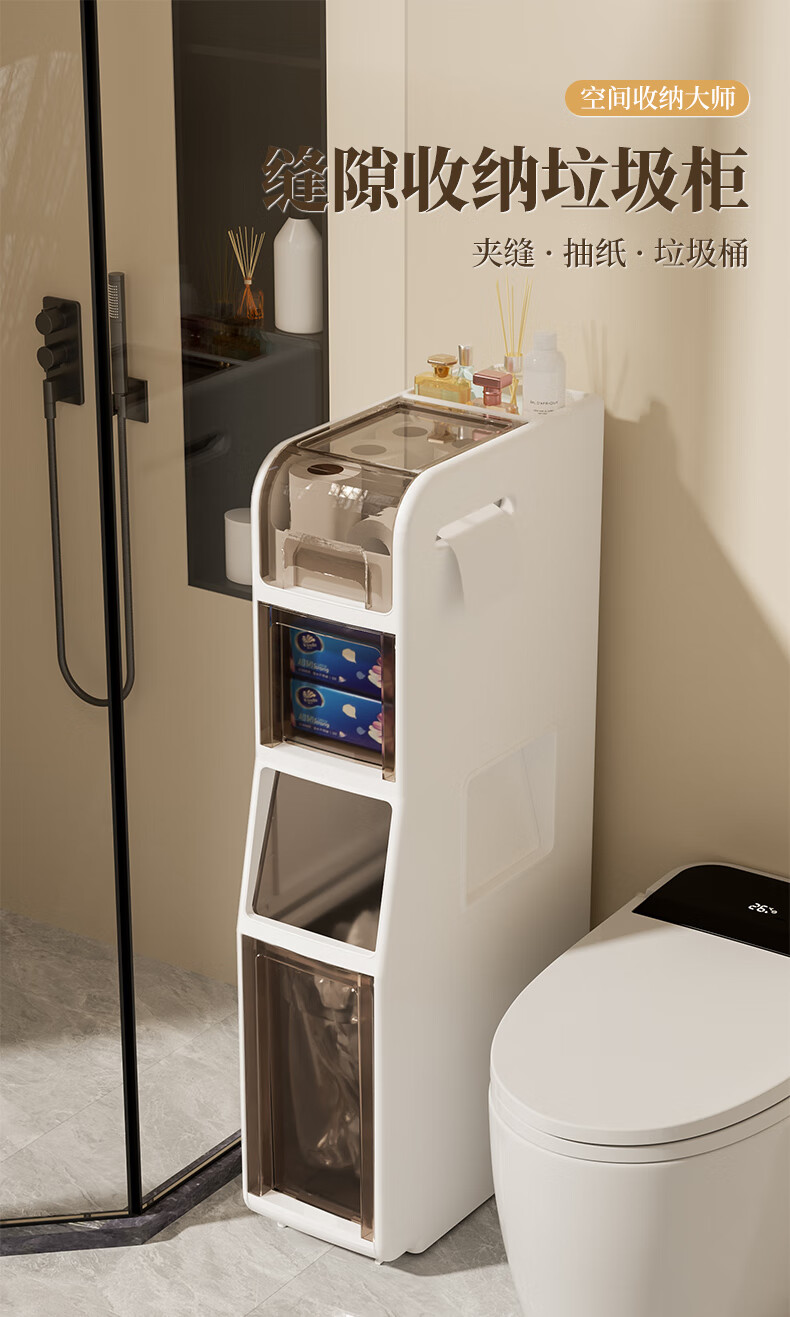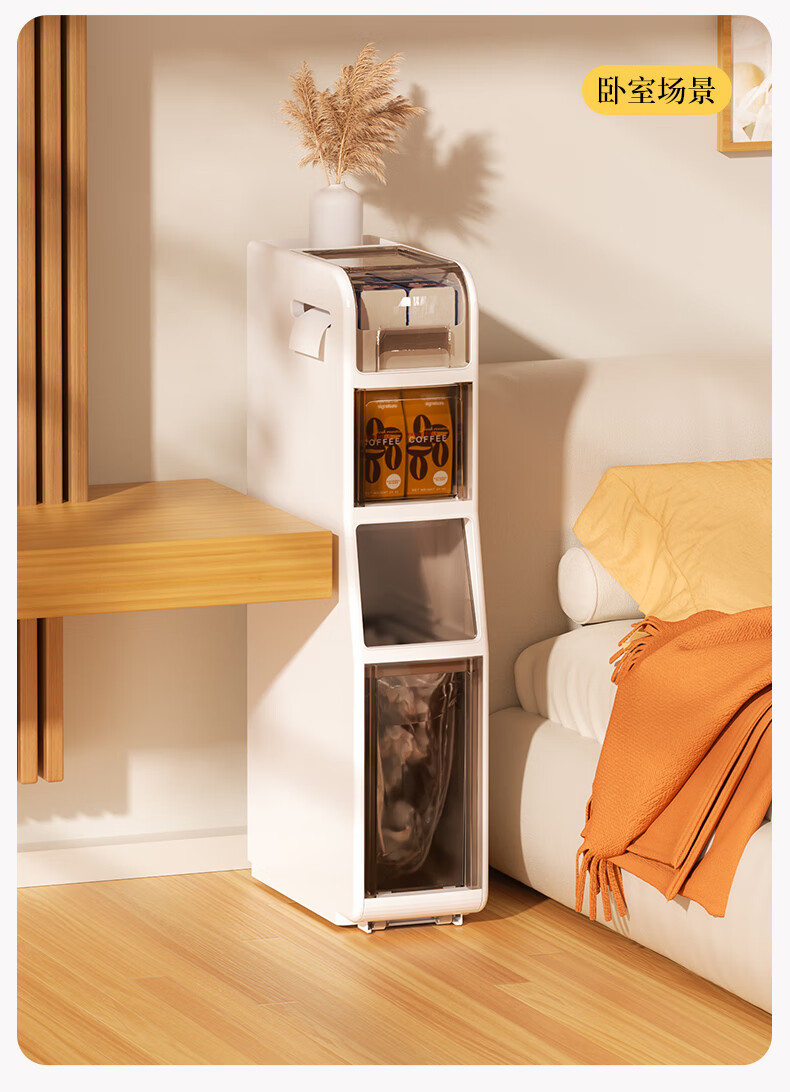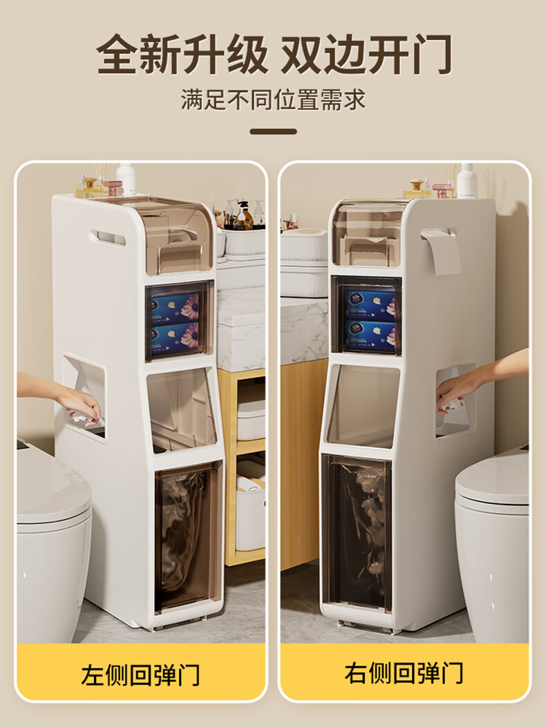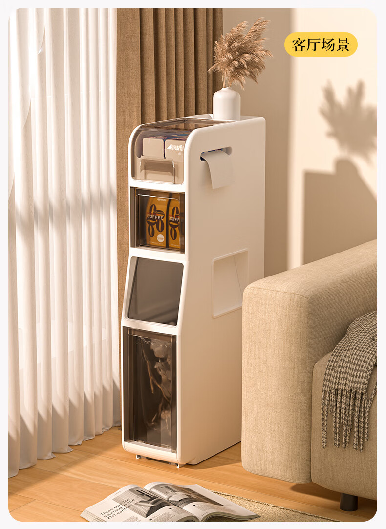 Fapeidian household trash can toilet bathroom bedroom 2024 new kitchen living room gap large-capacity paper bucket cabinet White tea double-sided paper throw slot gap garbage storage cabinet