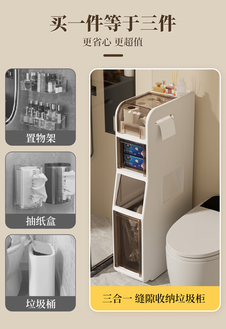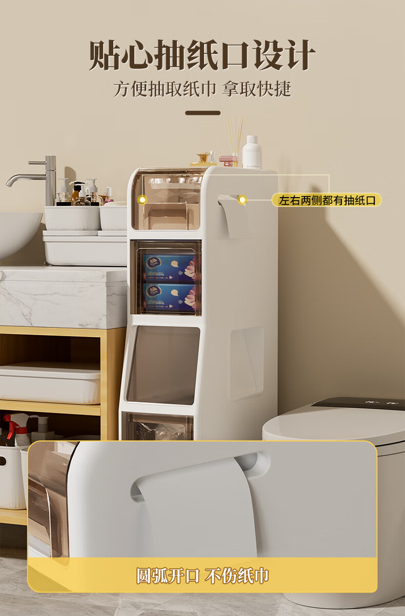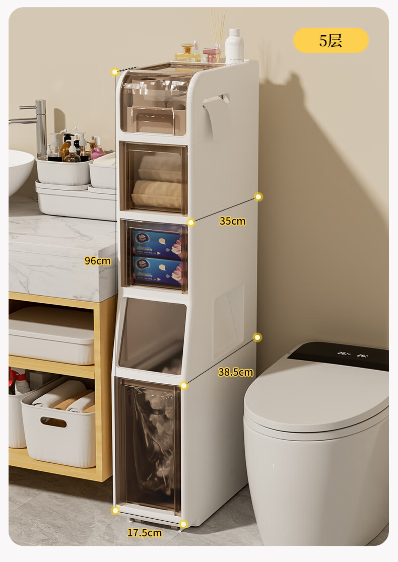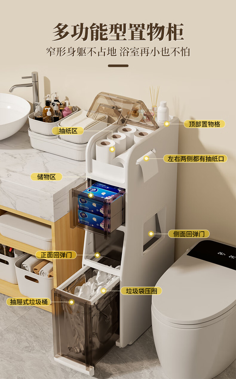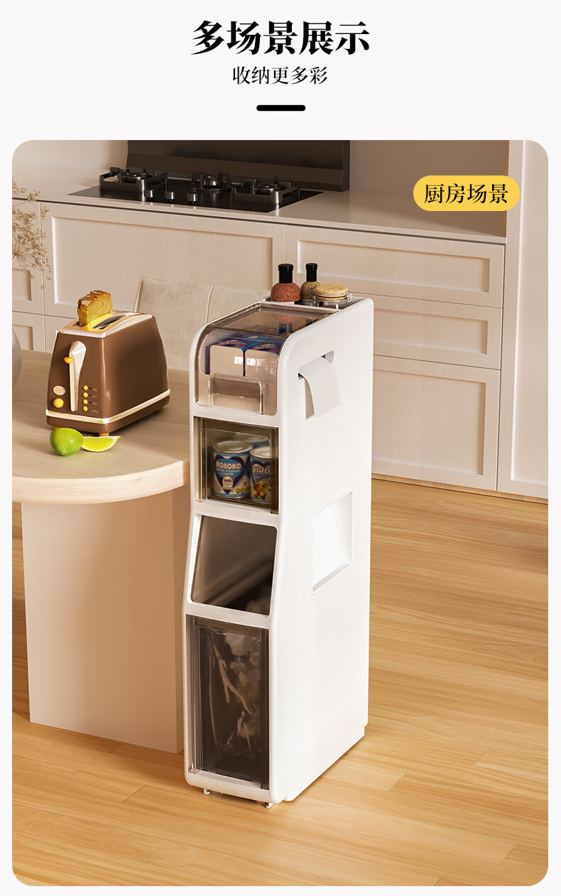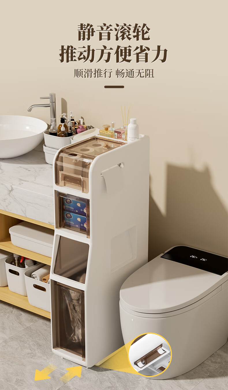 Fapeidian household trash can toilet bathroom bedroom 2024 new kitchen living room gap large-capacity paper bucket cabinet White tea double-sided paper throw slot gap garbage storage cabinet