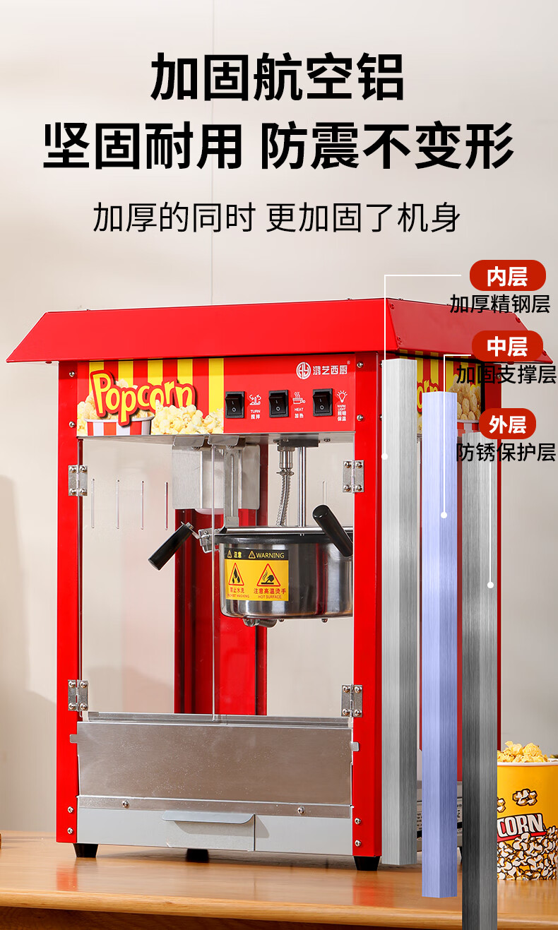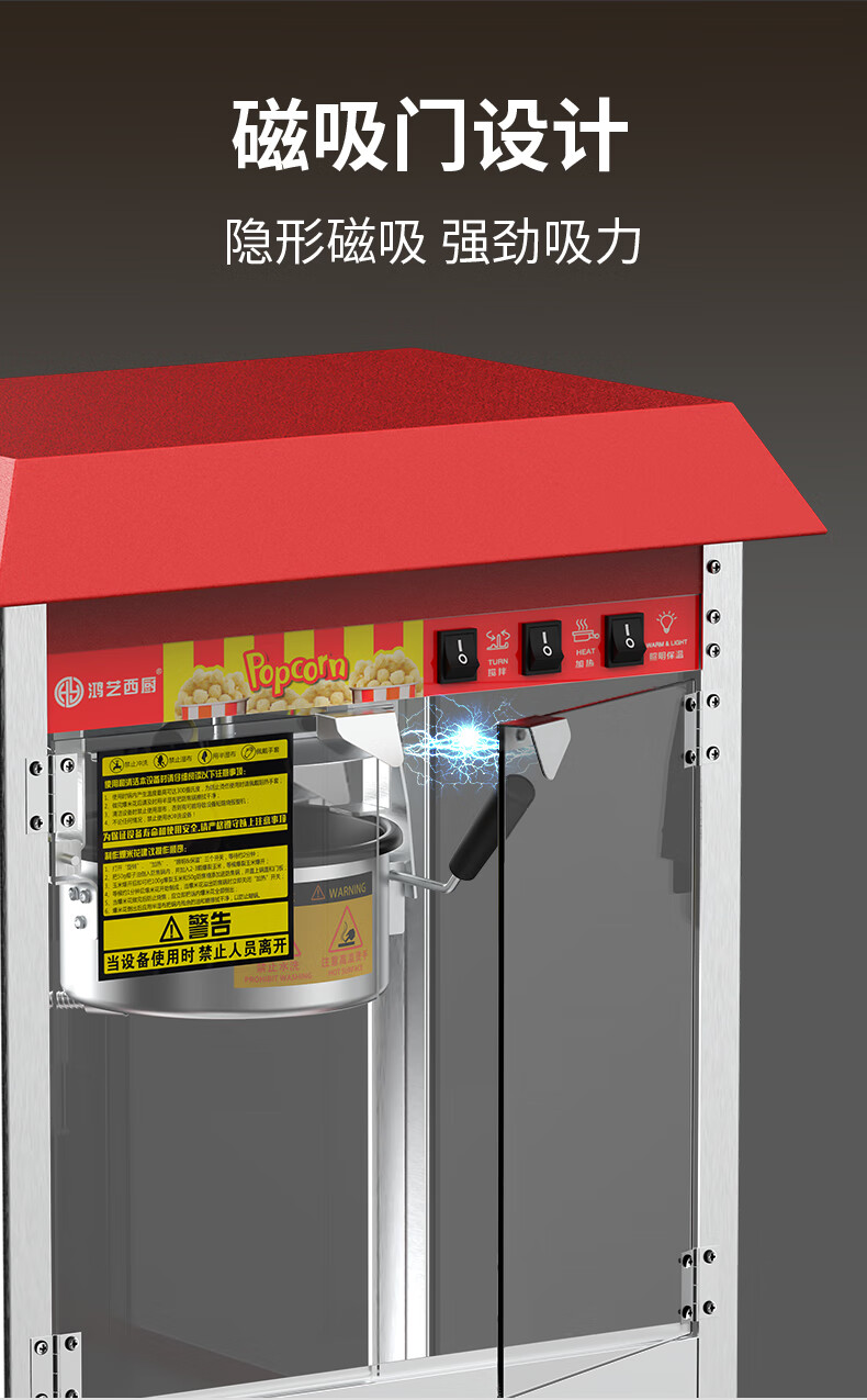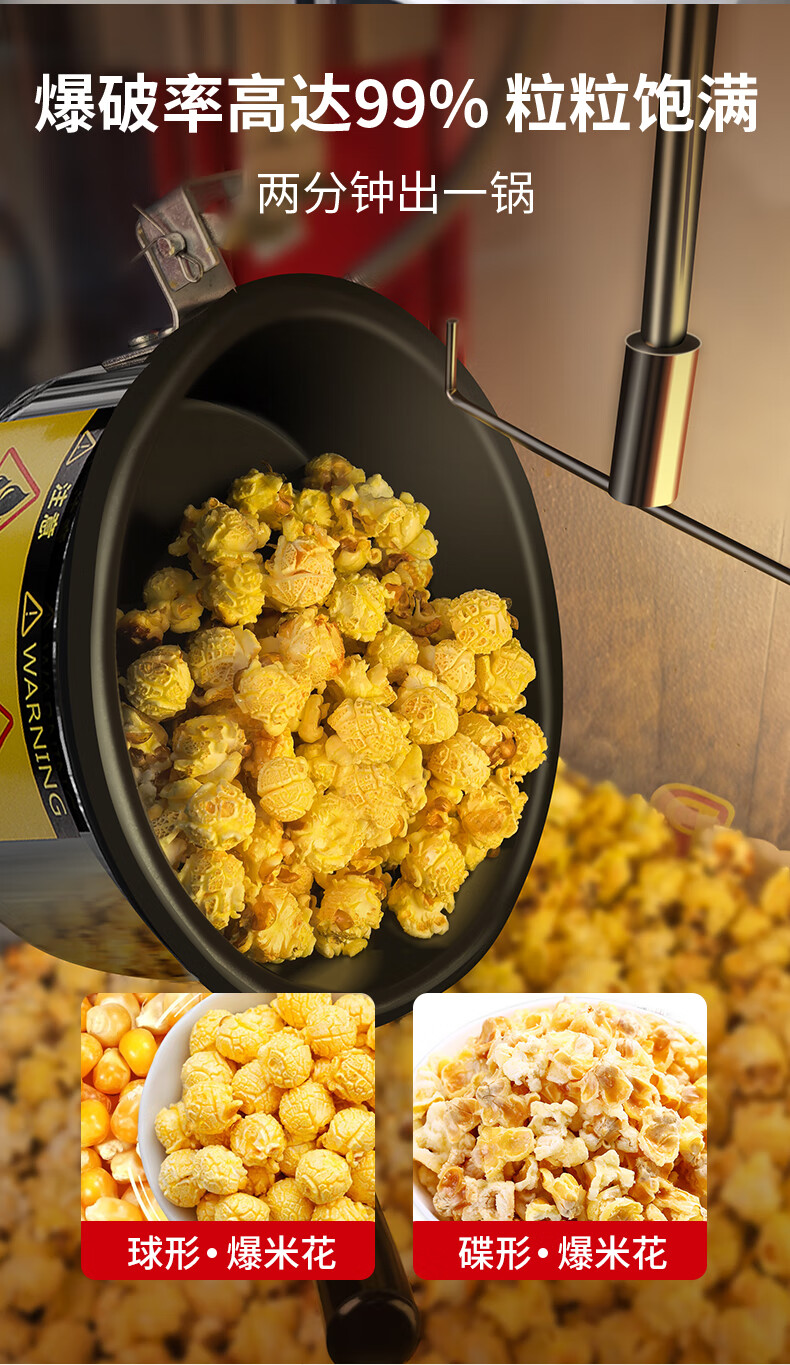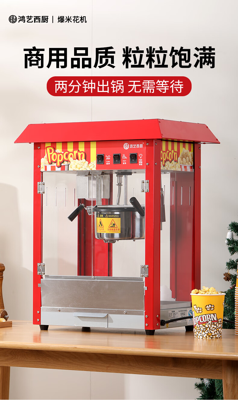 Hongyi Western Kitchen popcorn machine for commercial stalls new fully automatic rice popcorn three-in-one machine spherical butterfly-shaped corn popping machine cinema Internet celebrity small popcorn machine corn kernel raw material chain model red flat top increased size with insulation