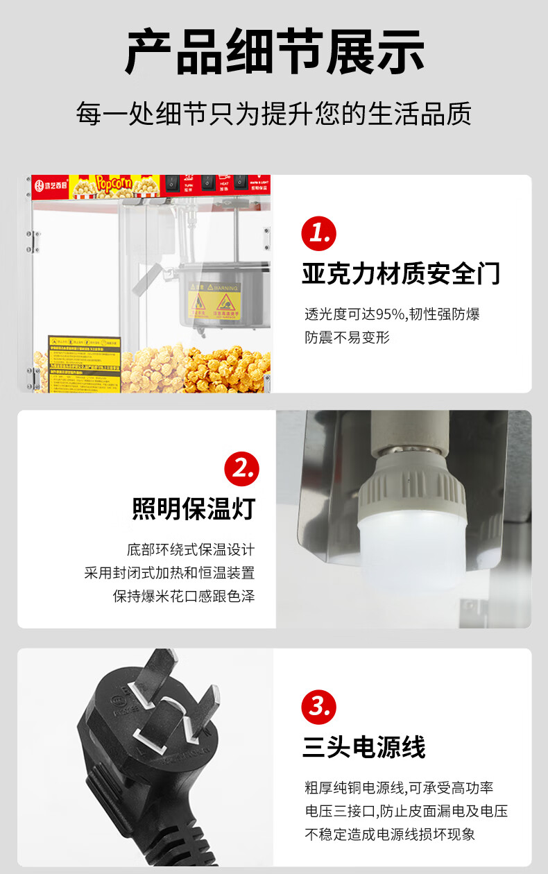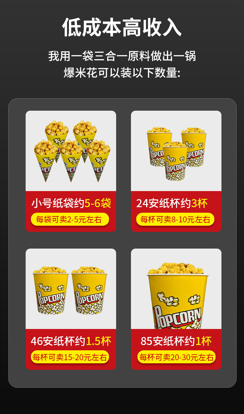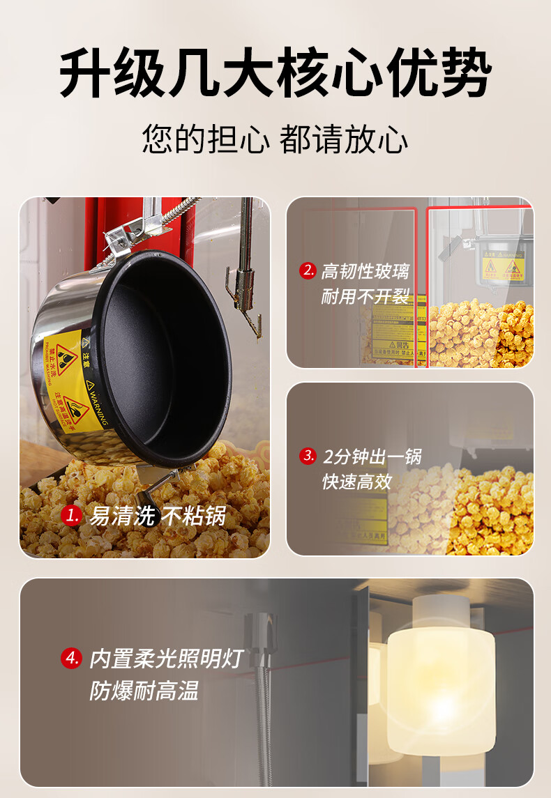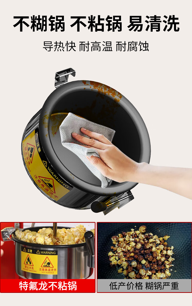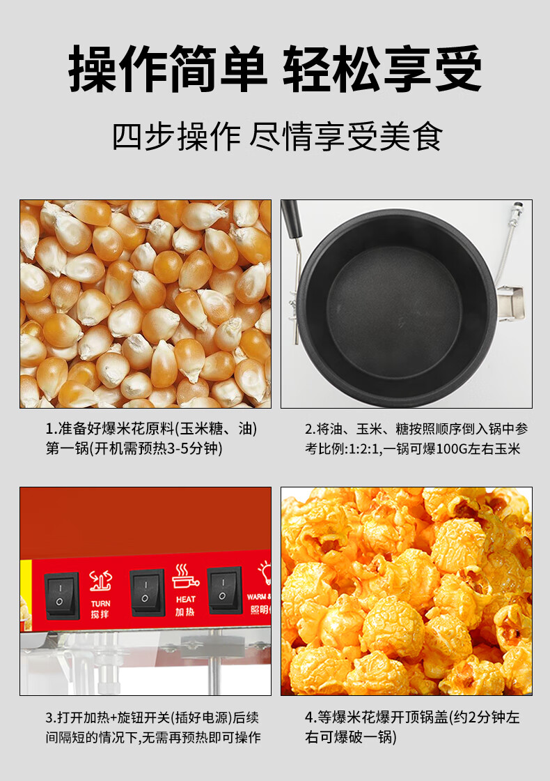 Hongyi Western Kitchen popcorn machine for commercial stalls new fully automatic rice popcorn three-in-one machine spherical butterfly-shaped corn popping machine cinema Internet celebrity small popcorn machine corn kernel raw material chain model red flat top increased size with insulation