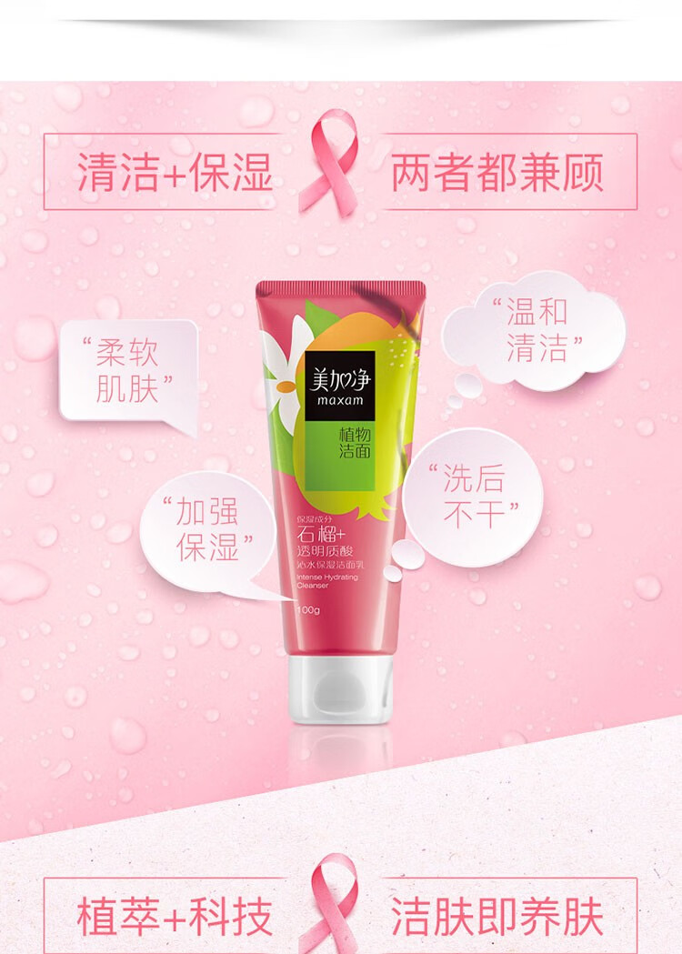Mega Cleansing Water Moisturizing Cleanser 100g (newly upgraded plant skin care pomegranate essence hyaluronic acid) moisturizing and soft 2 bottles