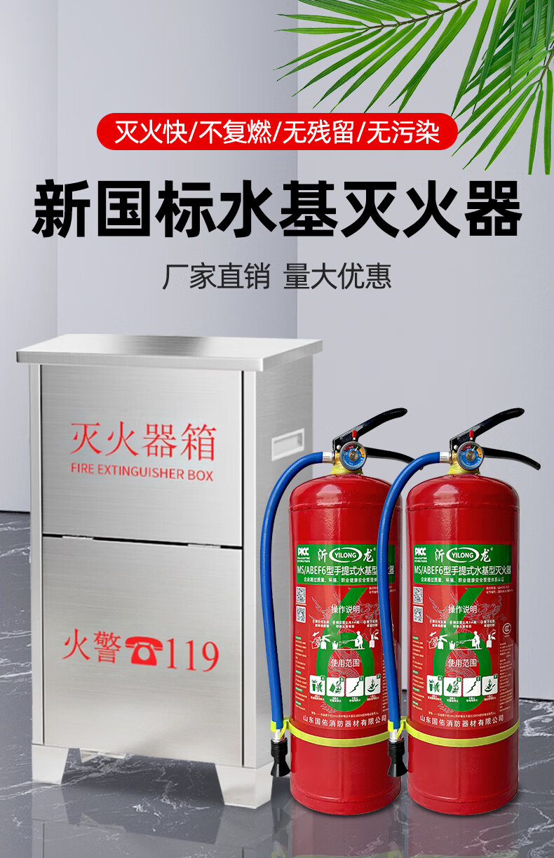 25 years new international water-based fire extinguisher box 3 liter fire extinguisher box 6L 9 liter fire extinguisher box stainless steel box for shops kindergarten rounded corner box fire extinguisher set household fire equipment 6 liter water-based fire extinguisher box