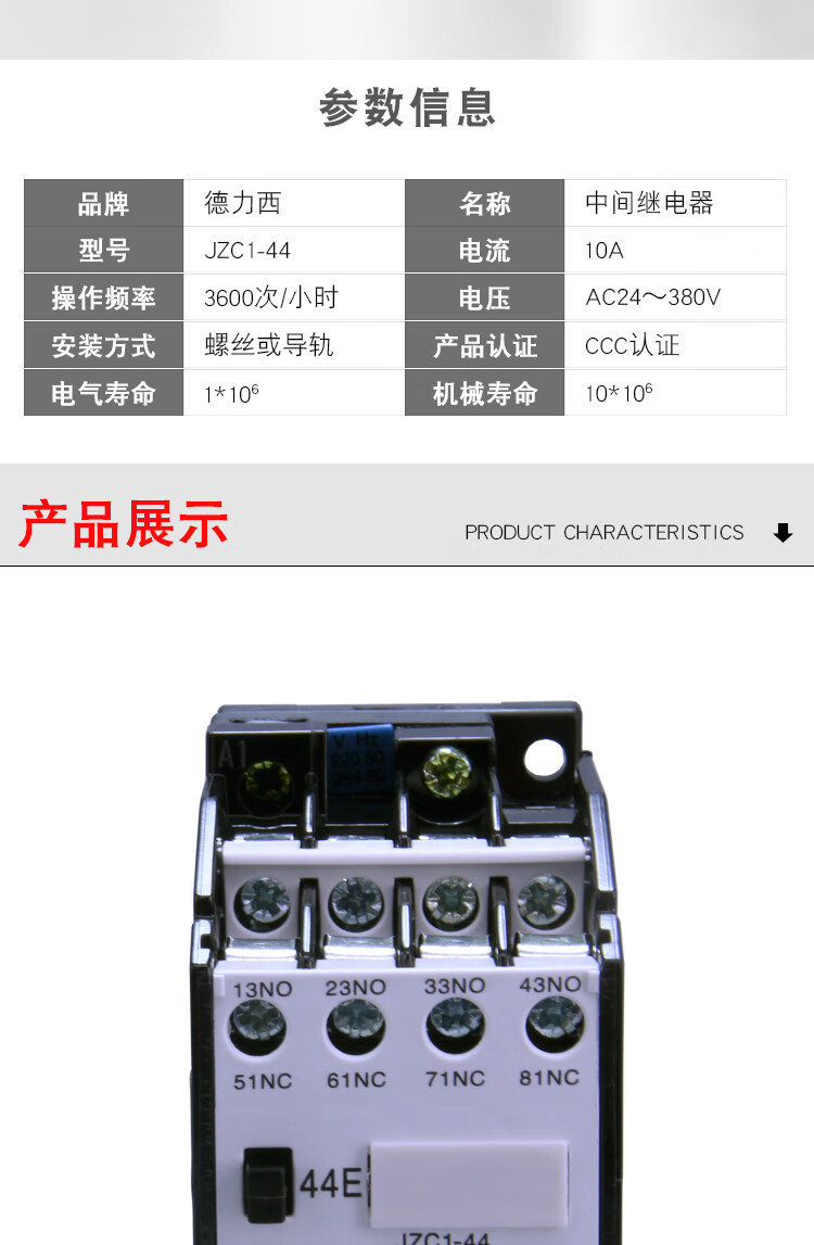 Delixi JZC1-44 four-open and four-closed intermediate relay 220V380V JZC1-62 53 36V24V JZC1-62 220V