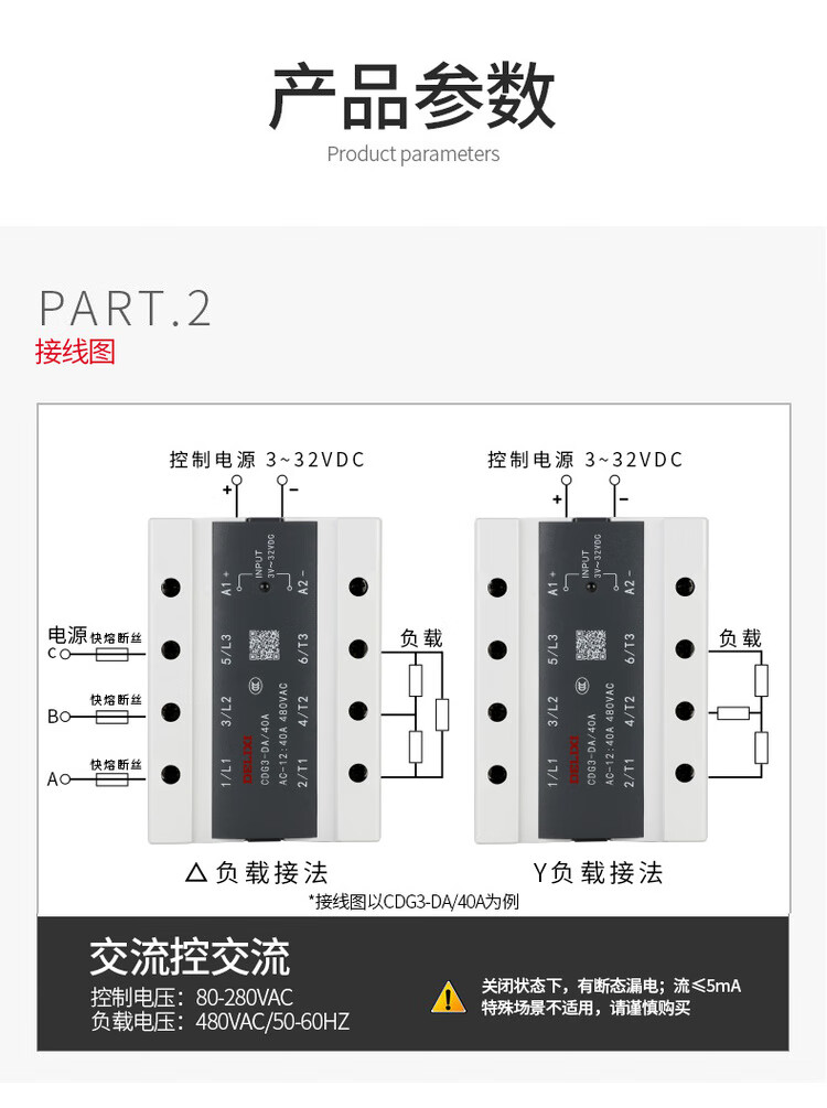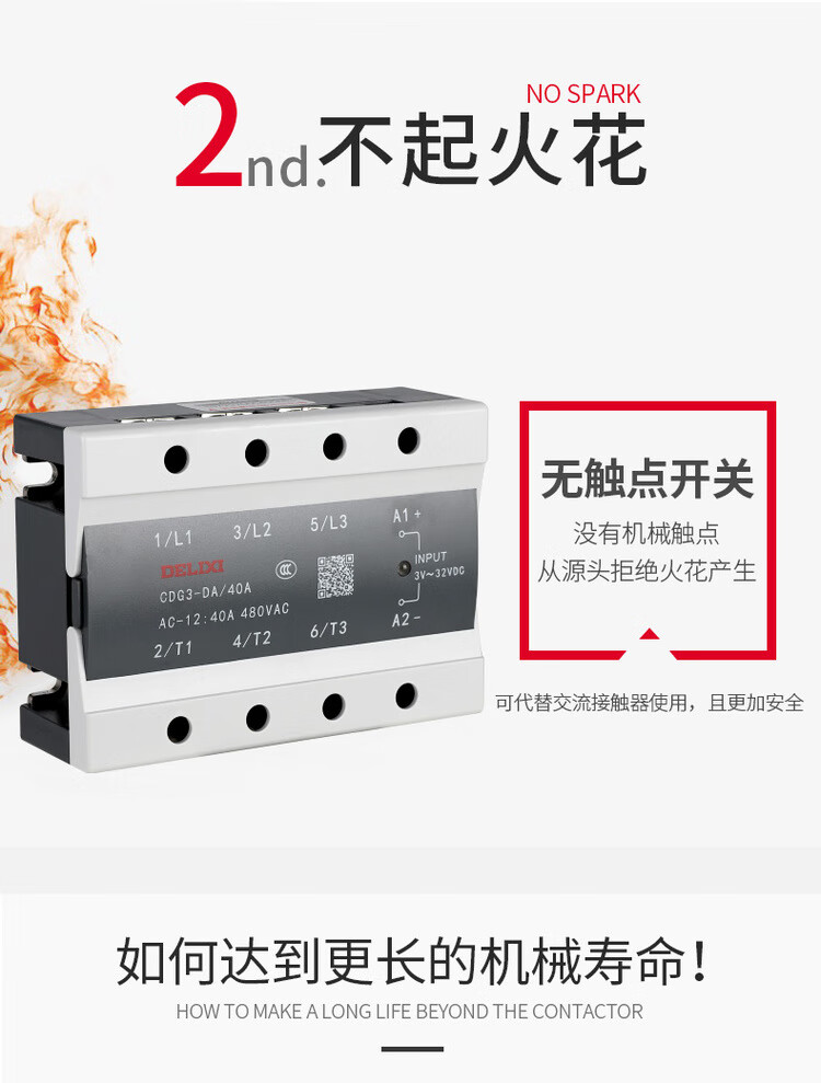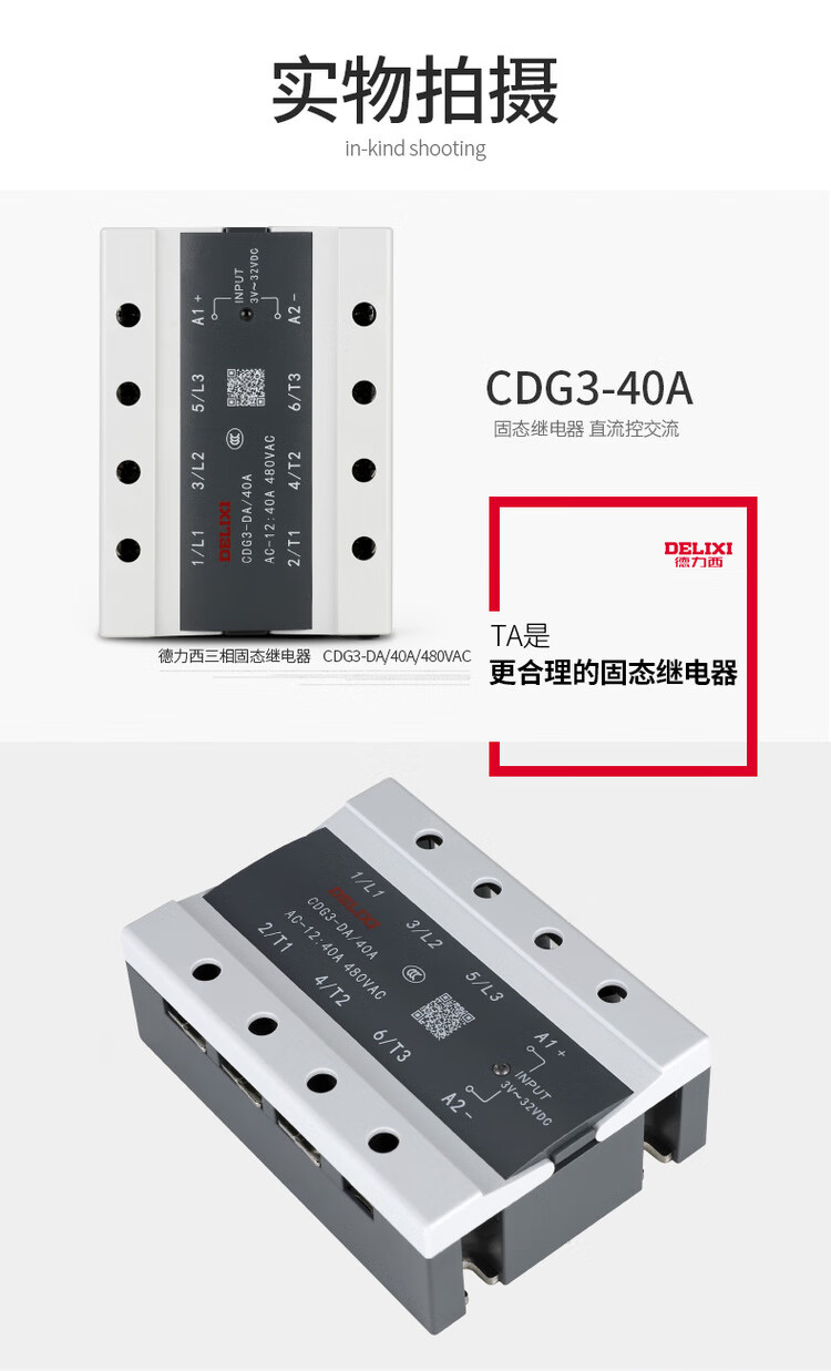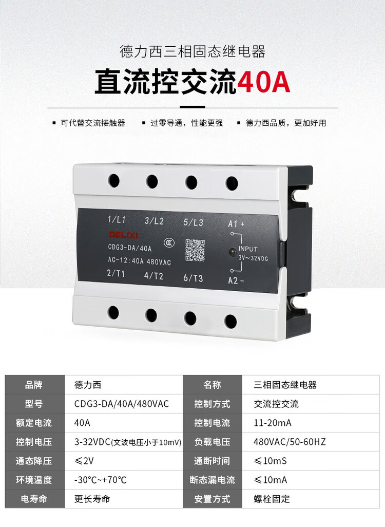 Delixi 100a three-phase solid-state 380v relay DC control AC non-contact contactor ssr-da40A AC control AC (80)A