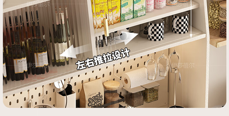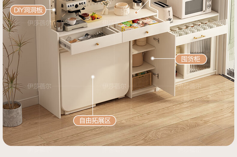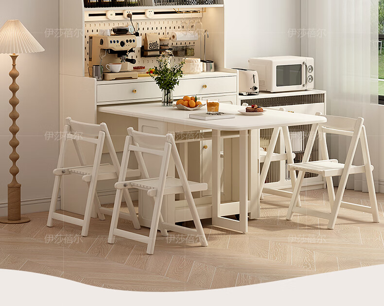 Isabel solid wood sideboard integrated wall cabinet folding dining table small apartment simple restaurant multi-functional storage locker 0.87 meters high cabinet white