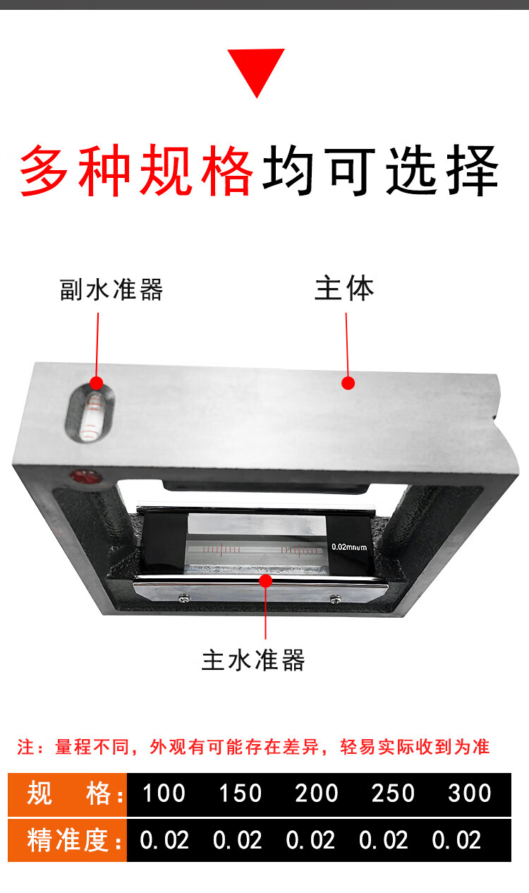Huili Shandong high-precision frame level fitter level measuring instrument 150/200/300mm0.02mm frame level 200*0.02