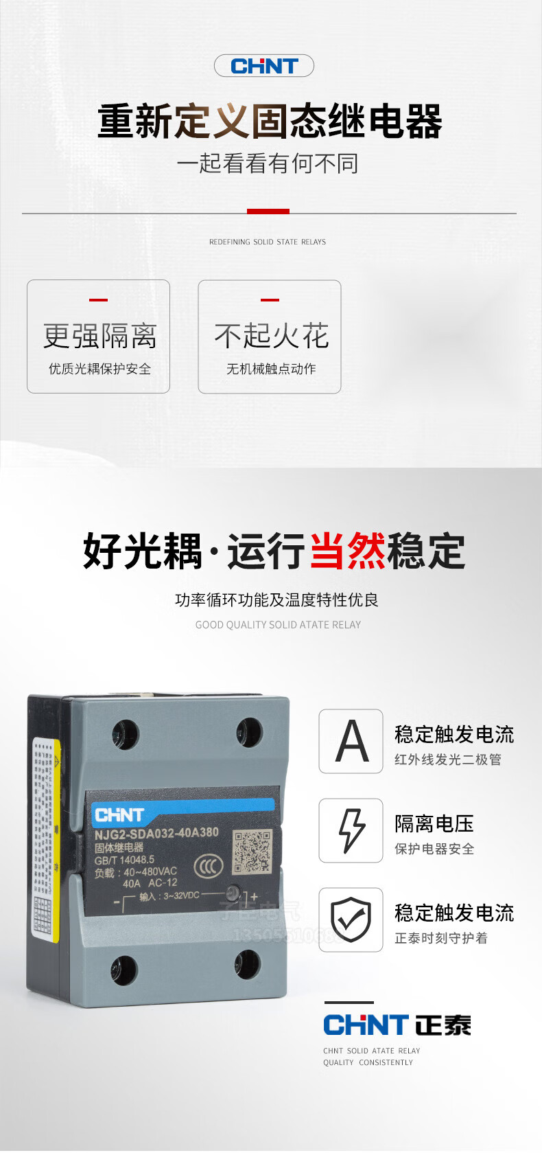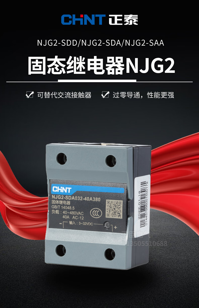 Chint single-phase solid state relay NJG2 24v12V DC control AC 220v solid SSR-40DA NJG2-SDA032-30A220 DC control AC