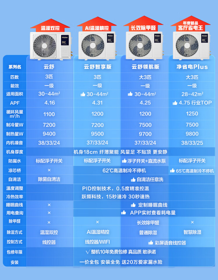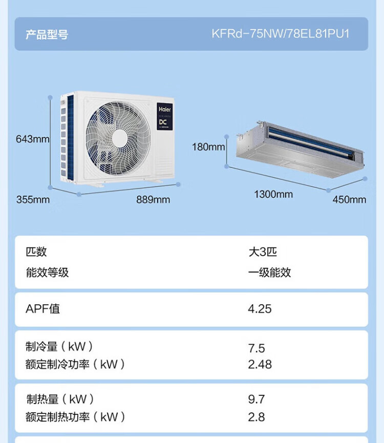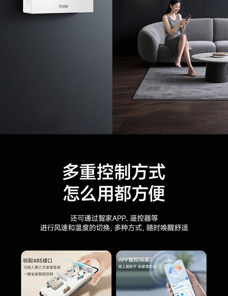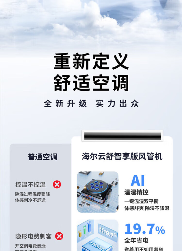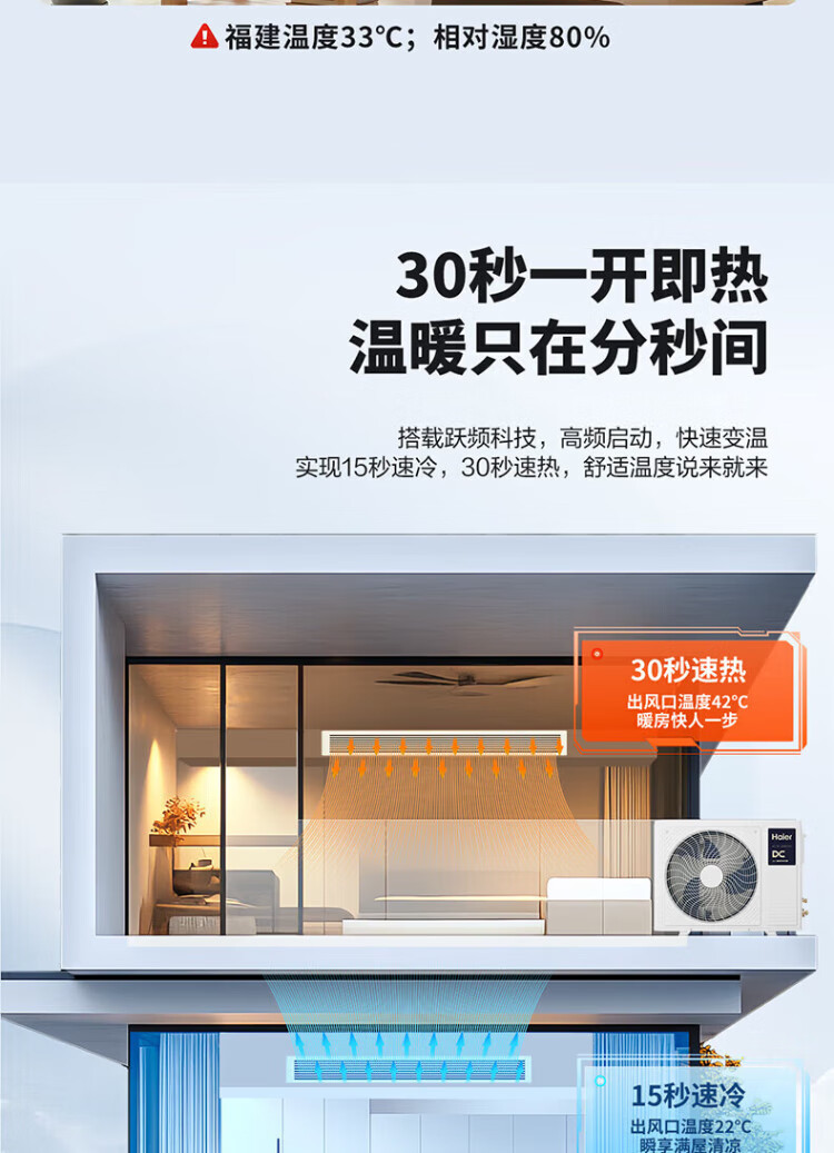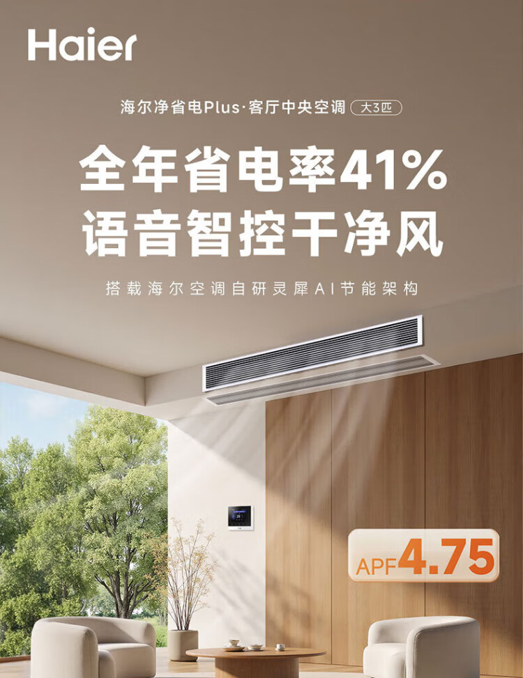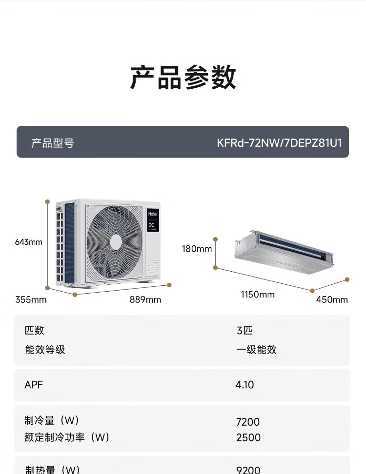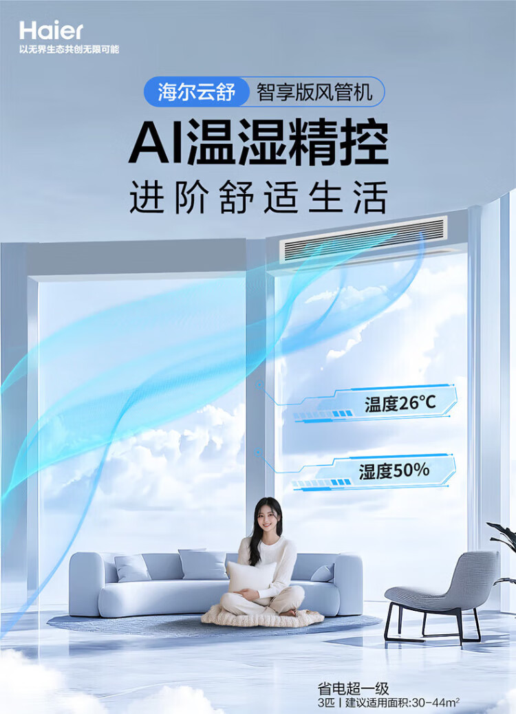 Haier central air conditioner, clean and energy-saving Plus duct machine, one to one living room 3 hp/large 3 hp home air conditioner temperature and humidity precise control WIFI intelligent control full DC variable frequency heating and cooling dual-use Yunshu 3 hp smart enjoy model AI temperature and humidity intelligent control (installation not included)