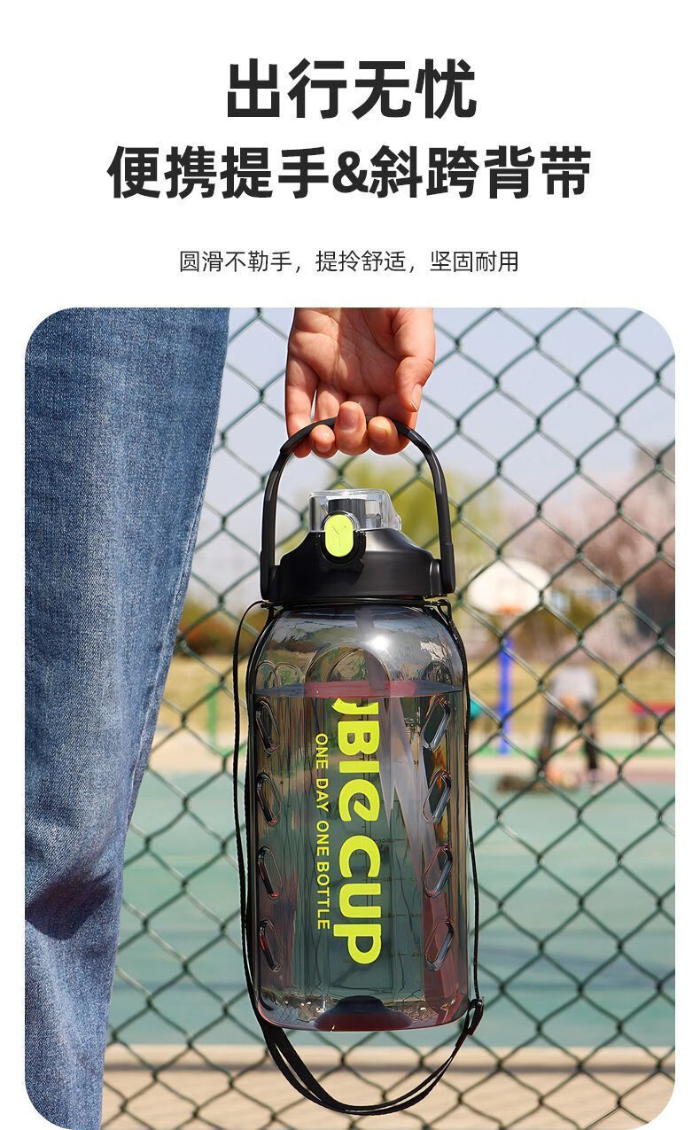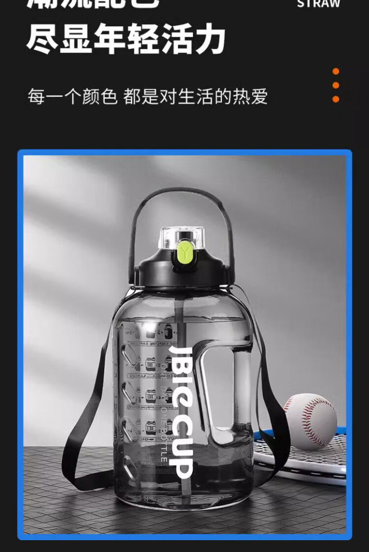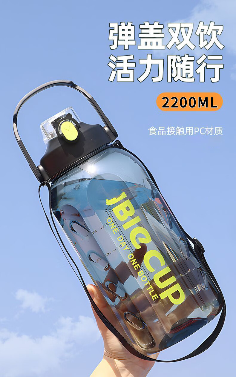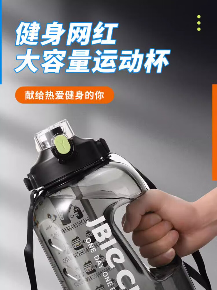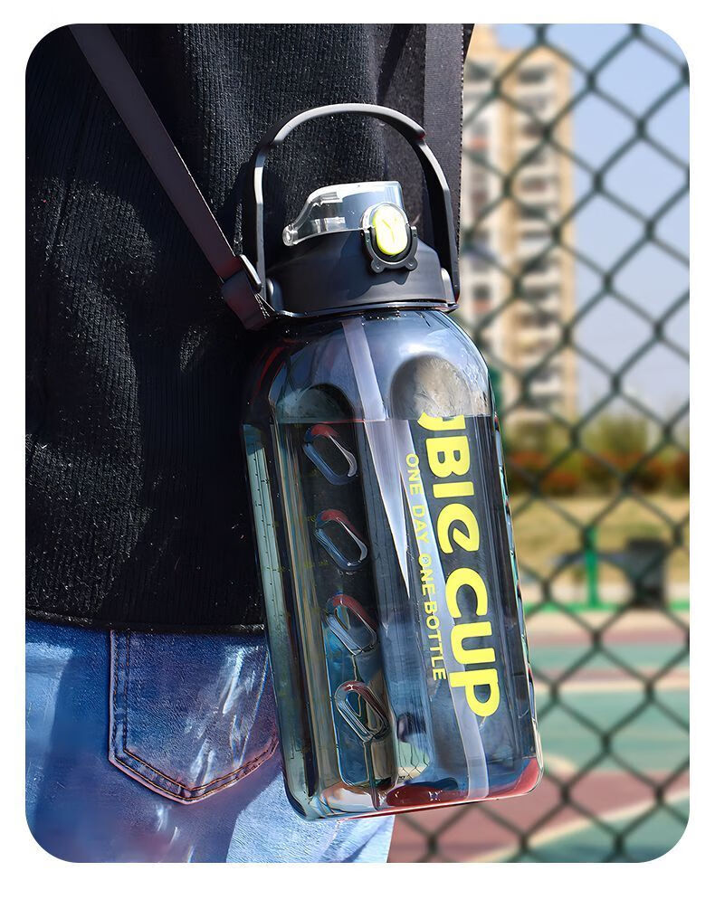 Mu Ting large-capacity water cup men's straw cup sports fitness kettle tons of buckets with filter grid tea making plastic cup (Dunton style) black 2200ml