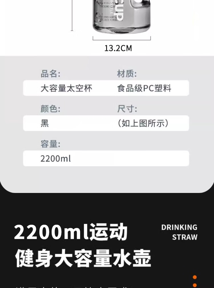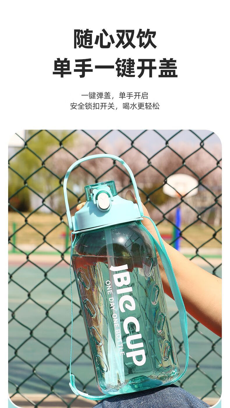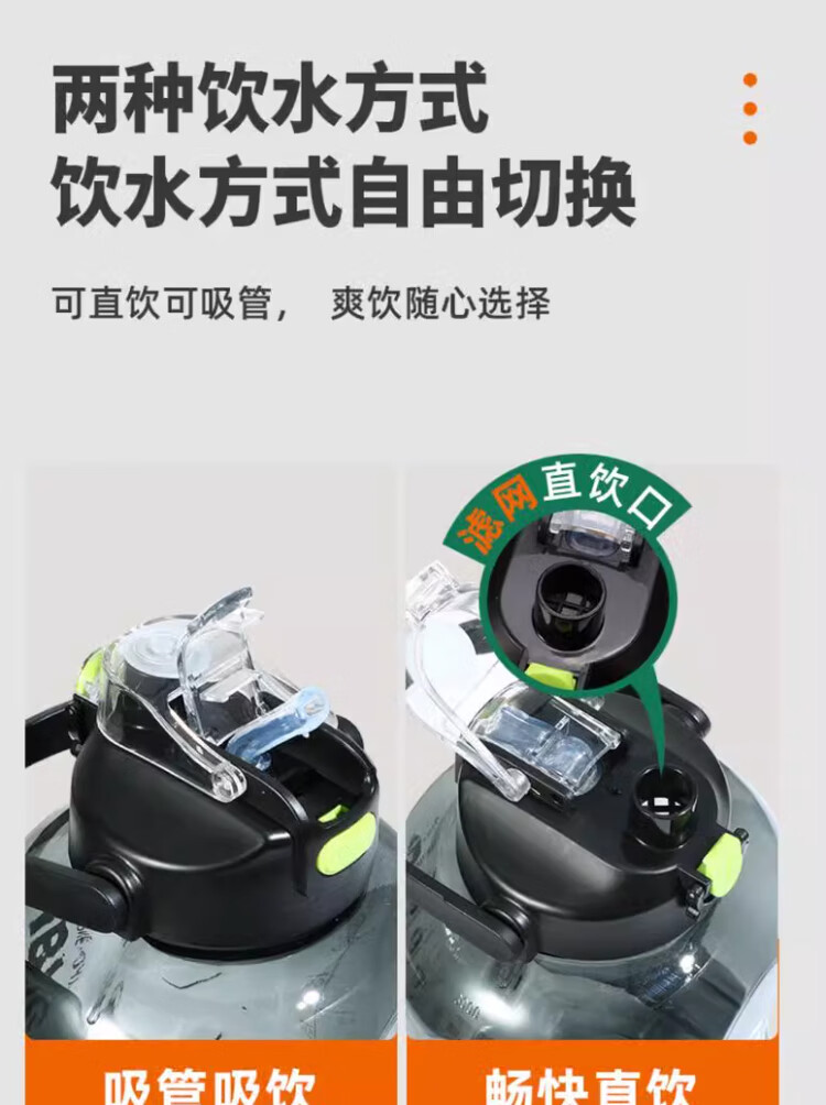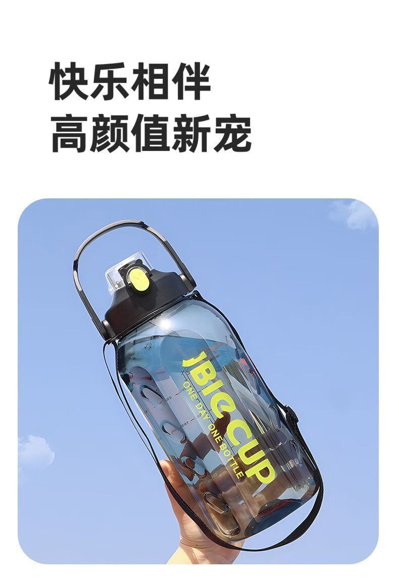 Mu Ting large-capacity water cup men's straw cup sports fitness kettle tons of buckets with filter grid tea making plastic cup (Dunton style) black 2200ml