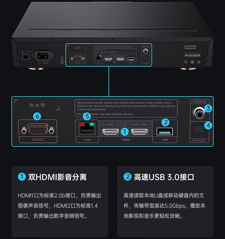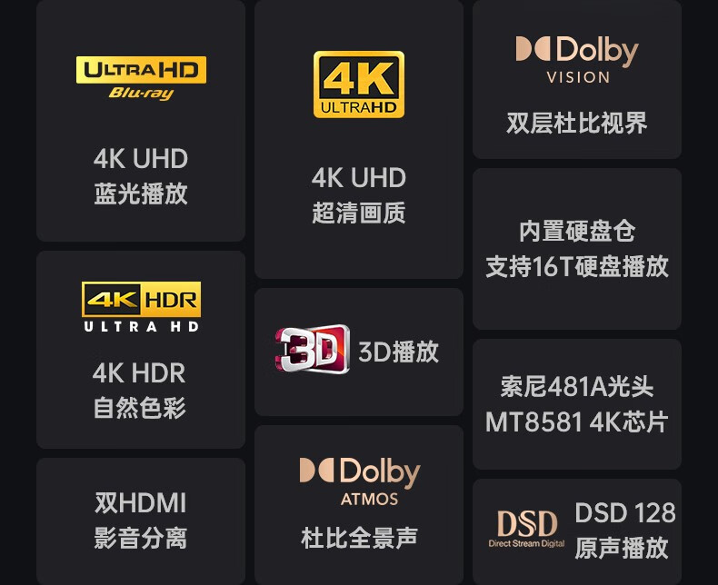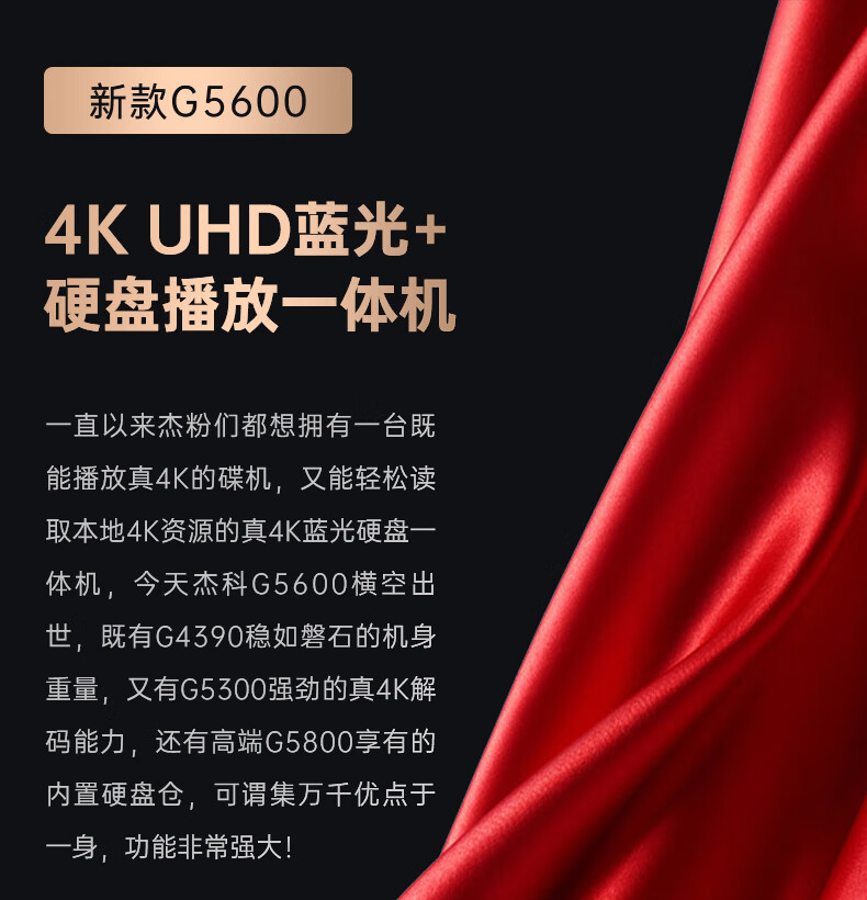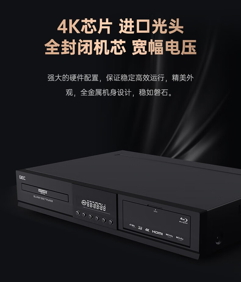 GIEC BDP-G5600 True 4K UHD Blu-ray Player Home DVD Player CD Player 3D Disc USB Hard Drive Playback Double Layer Dolby Vision Atmos Package Four G5600+5.1.2 Echo Wall+2 4K Discs True 4K Blu-ray Player