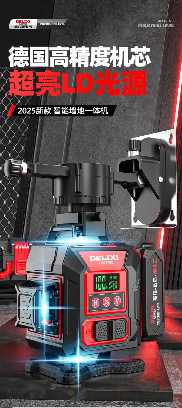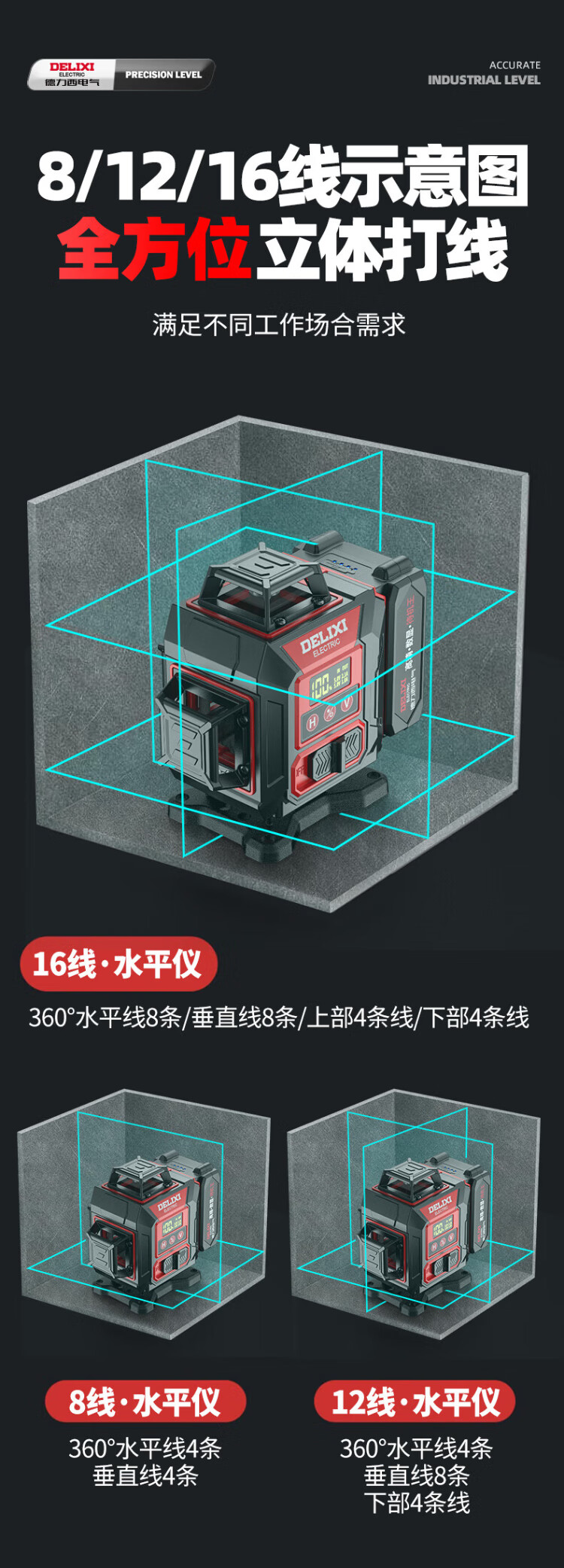 Delixi 12-line infrared high-precision strong light thin-line infrared level meter outdoor green light laser automatic leveling water meter digital display central control ultra-bright red light 12-line complete set