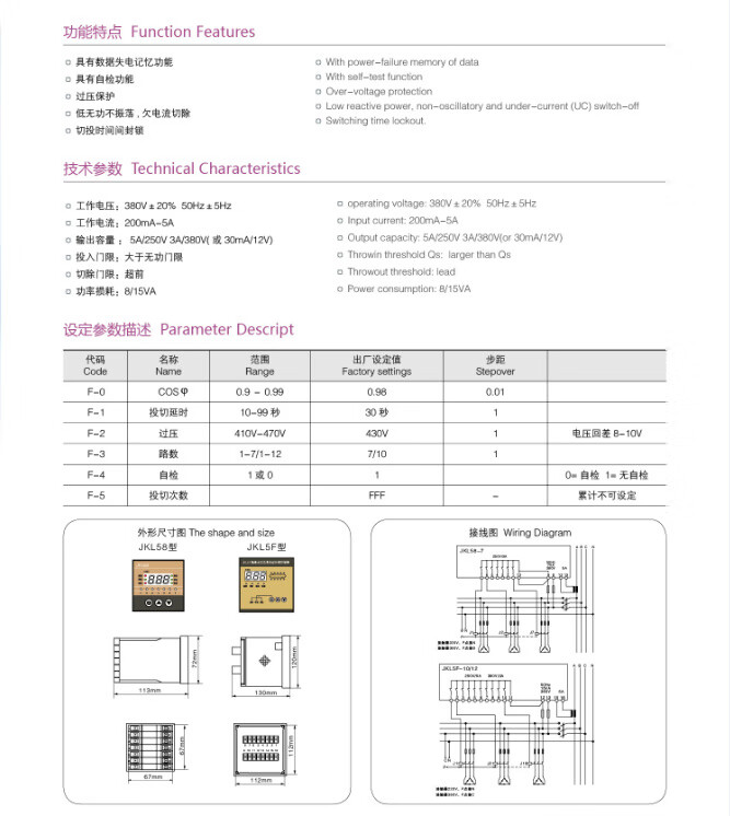 Jiudu JKL5F-10 dynamic reactive power compensation controller 380v 2468 loop 8cm-12