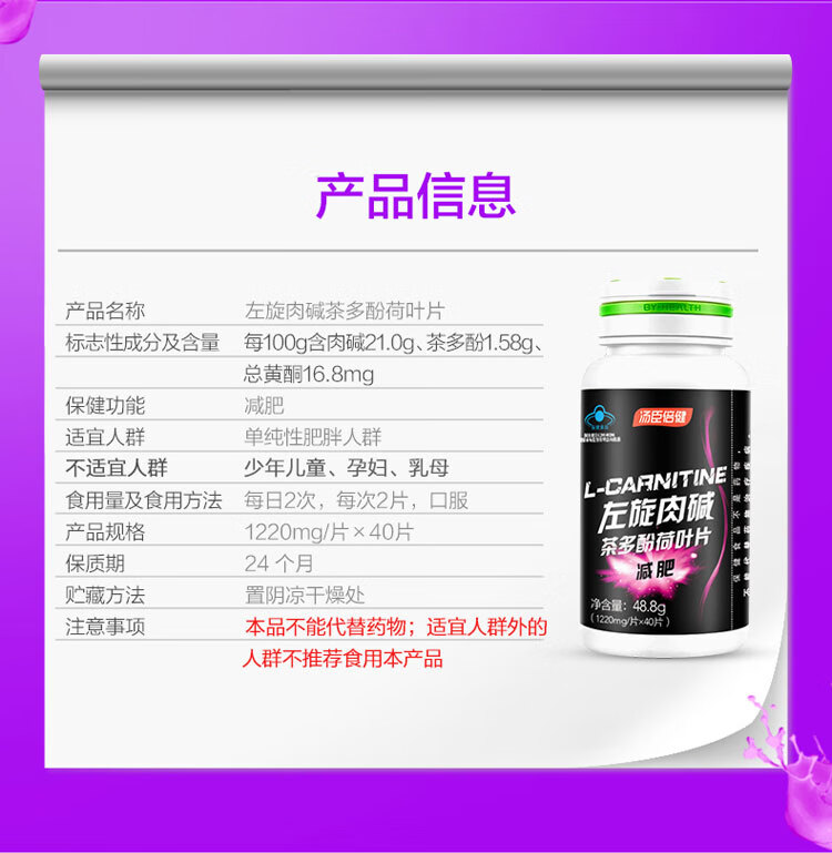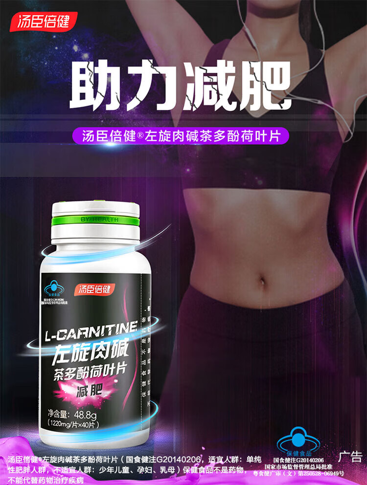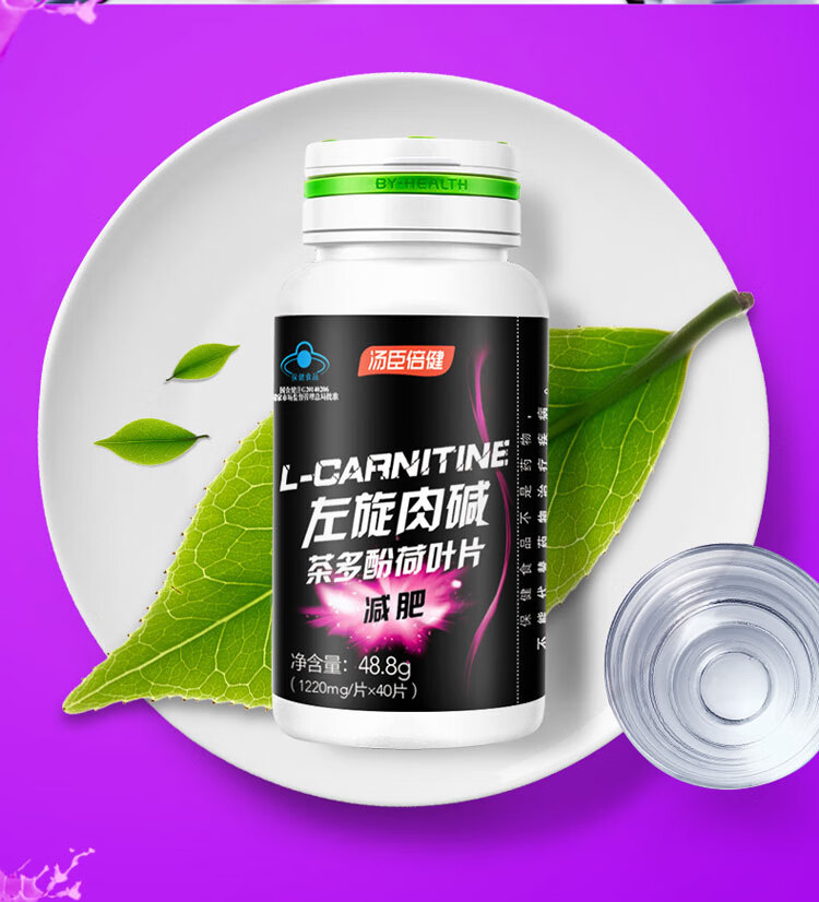 BYHEALTH L-Carnitine Tea Polyphenols Charged Leaves 40 Tablets Men and Women Adult Weight Loss 1 Box (40 Tablets)