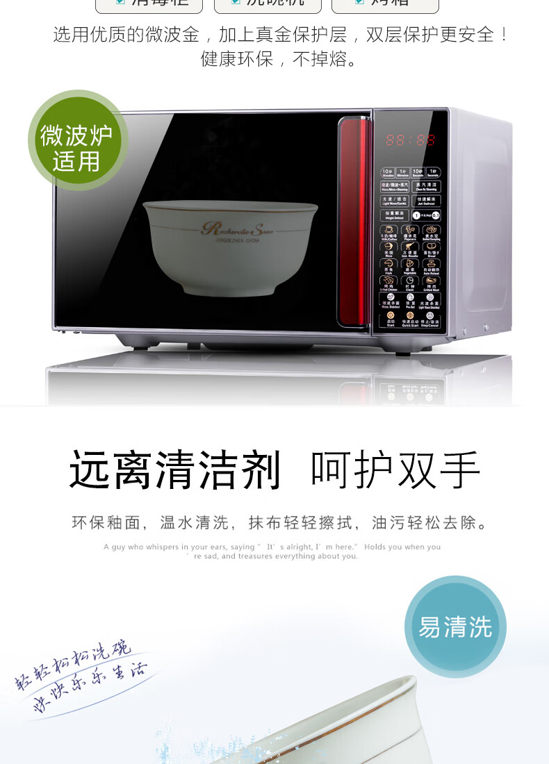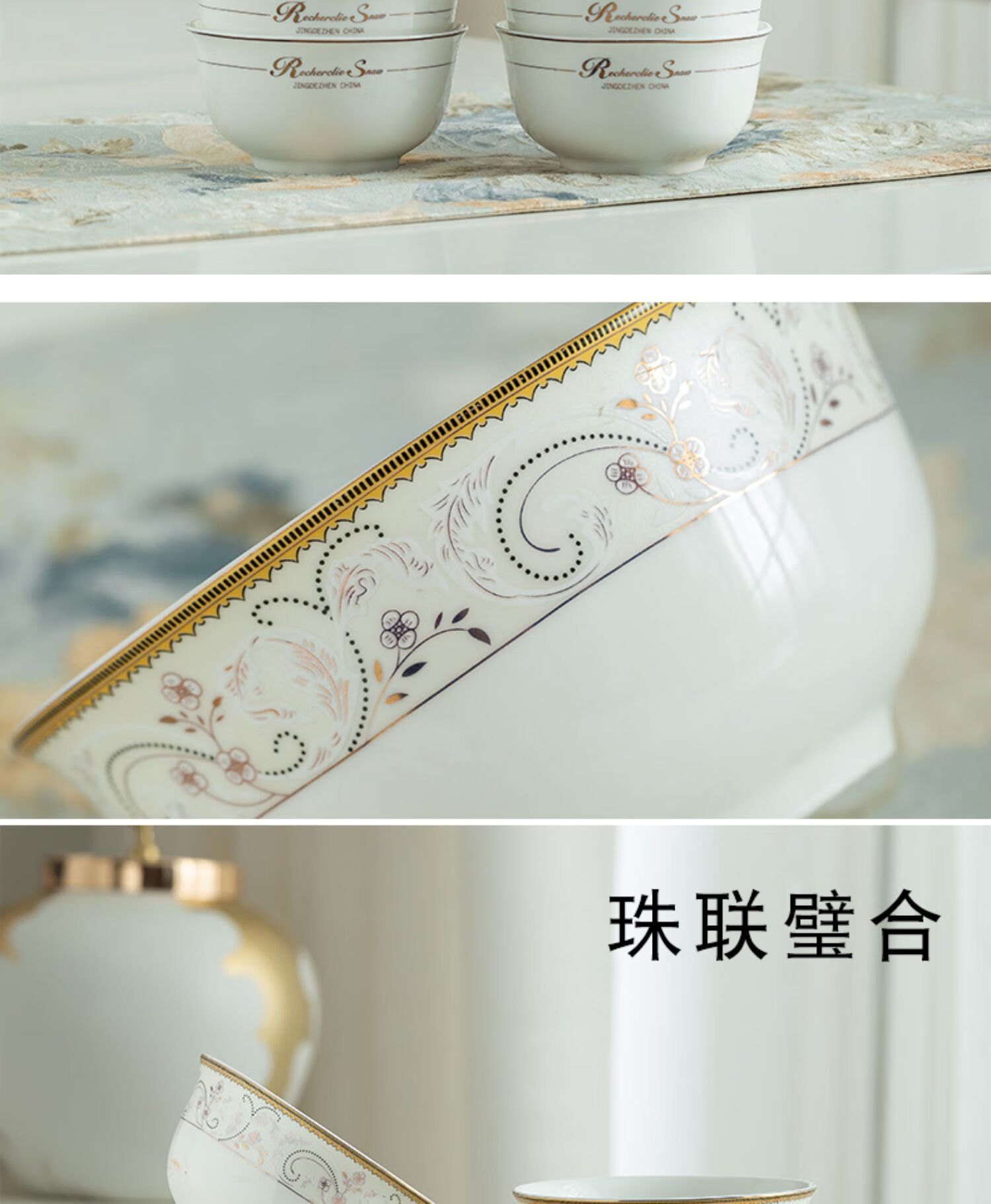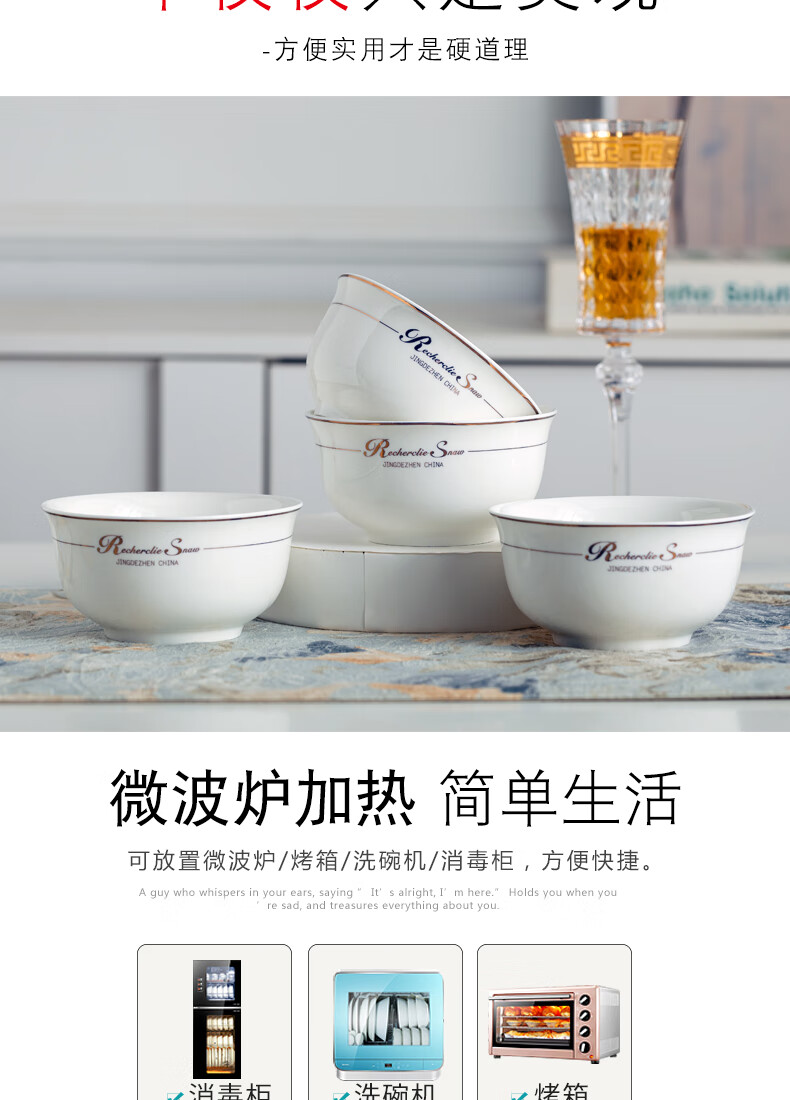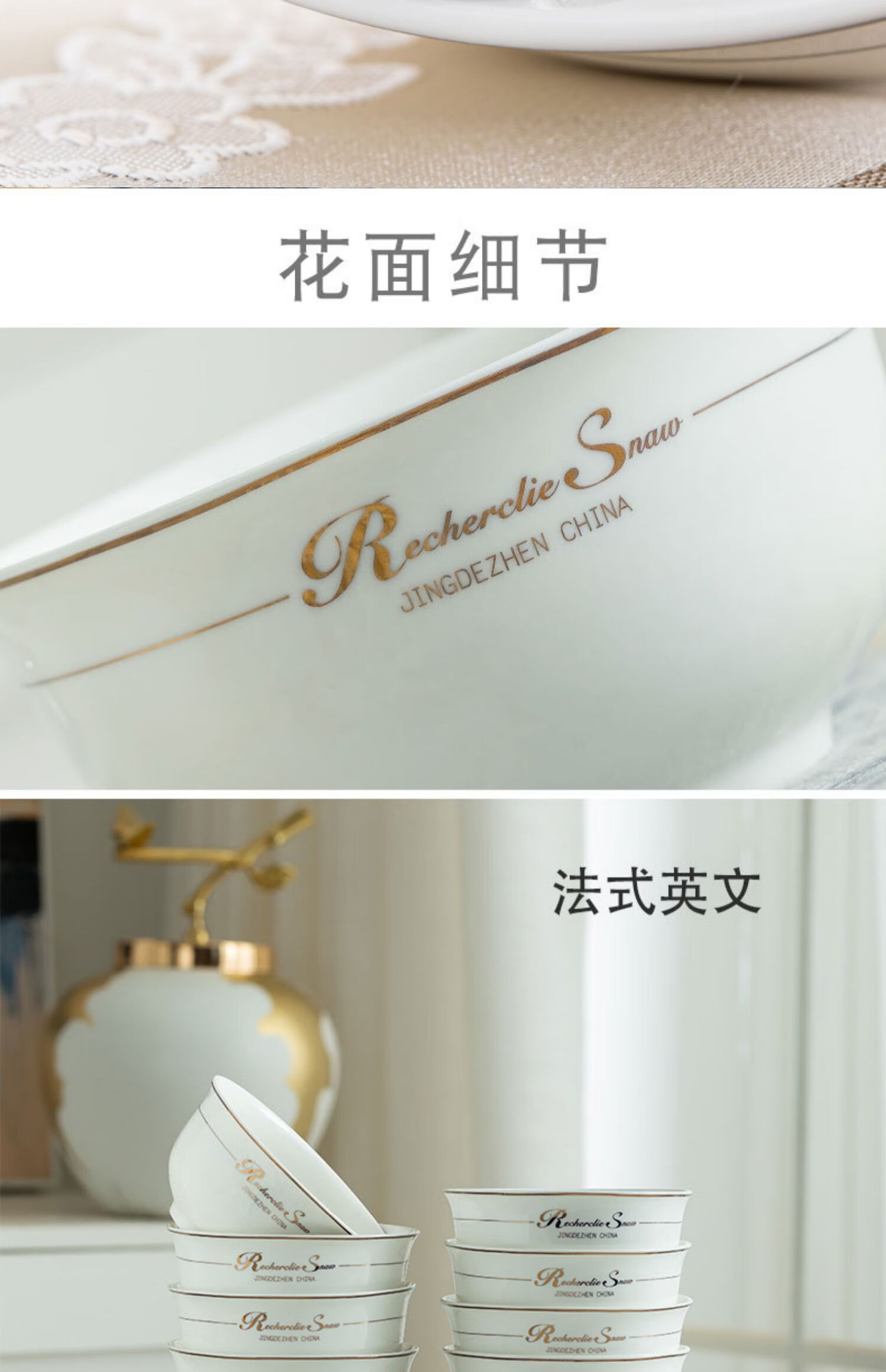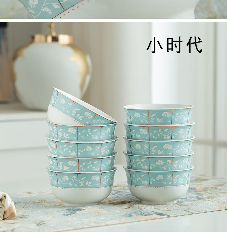 Suoyoute bowl household golden bell bowl rice bowl Jingdezhen tableware ceramic bowl Chinese creative home gift bowl microwave oven 4.5 inches French English 10 pieces