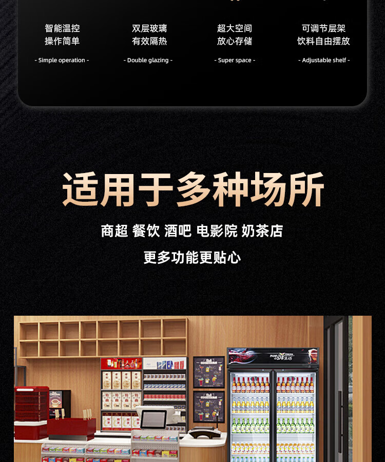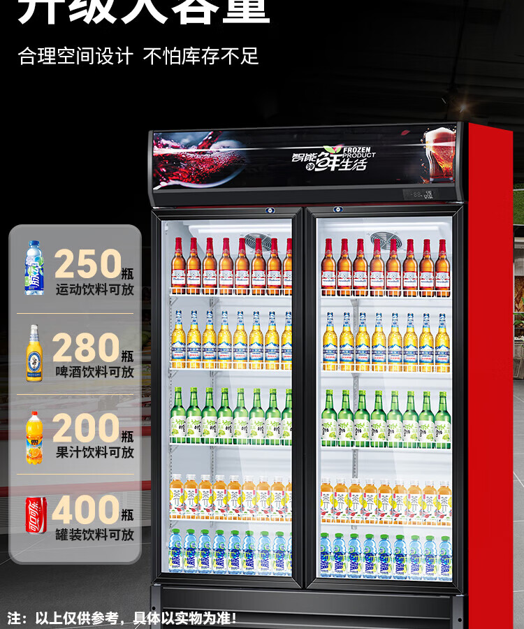 Haidibing large-capacity beverage cabinet commercial freezer direct refrigeration display cabinet wine cabinet pure air-cooled frost-free fresh cabinet supermarket glass door refrigerator vertical beer cabinet single door machine direct cooling 530*540*1630mm