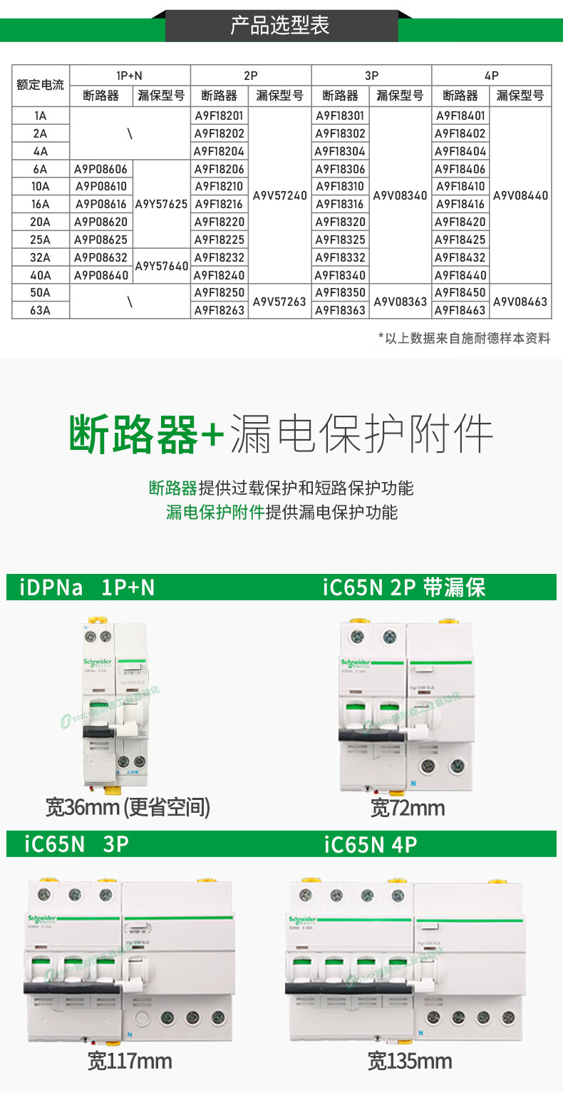 Schneider leakage protection circuit breaker IC65N/a9/1p+n/2/3/4p air switch/20/40/63/a 1P+N 10A