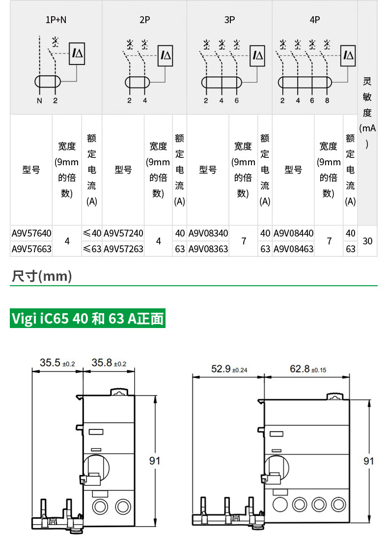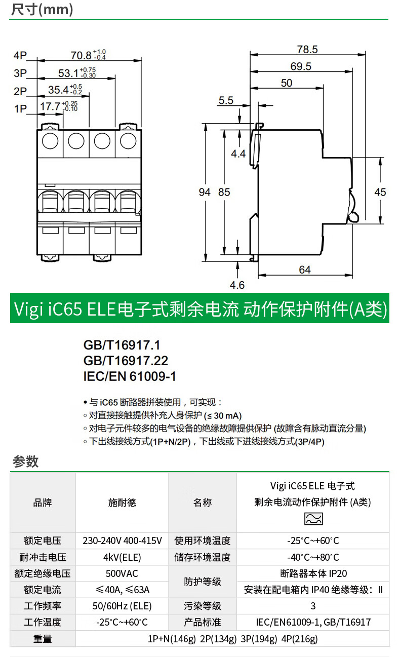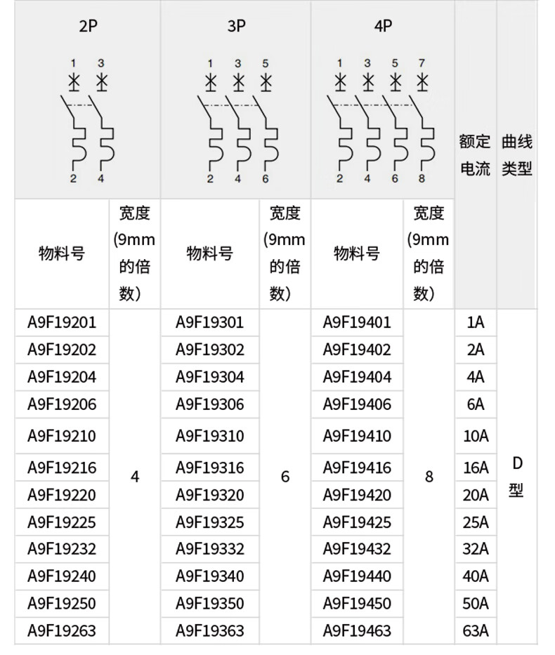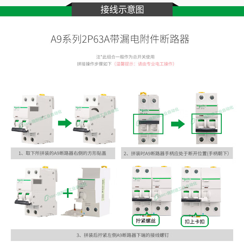 Schneider leakage protection circuit breaker iC65N short circuit protector air switch D type 63A 1p2P 3P 4P 4p 63A