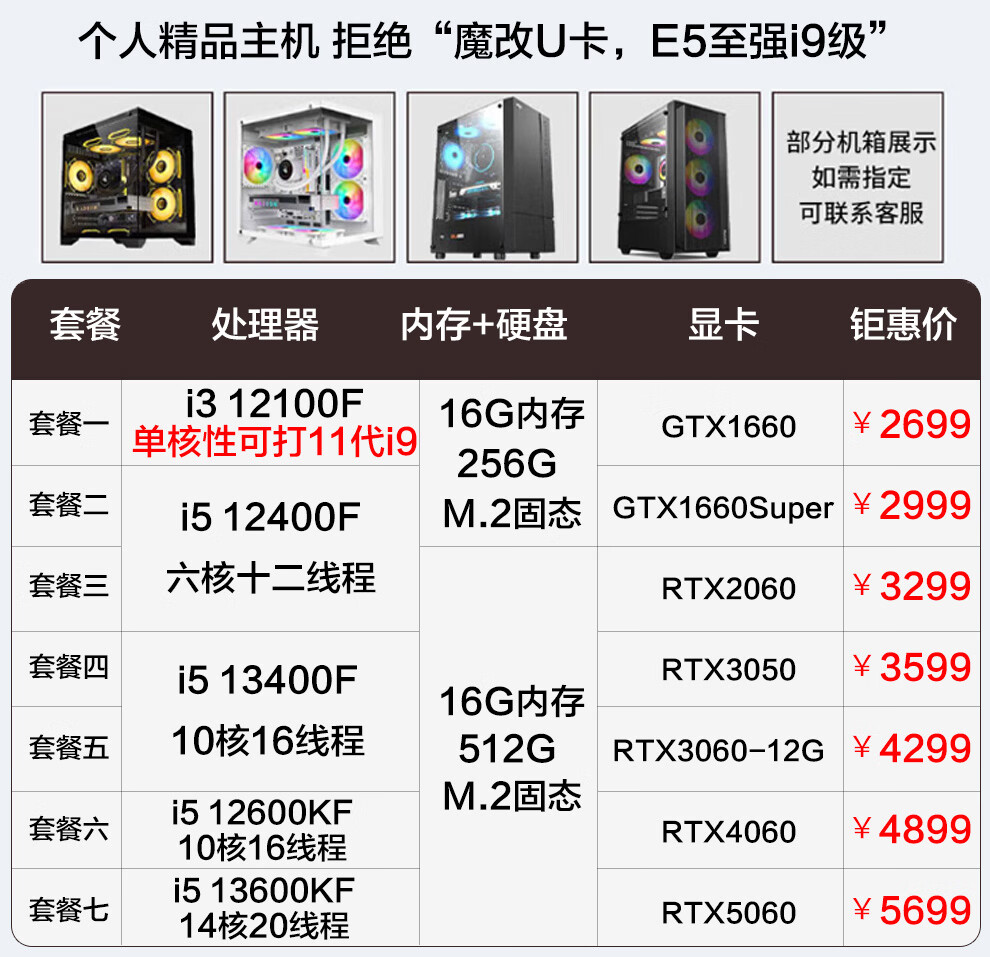 Core i5 13600KF/RTX5060/4060 computer desktop console game live broadcast Black Myth chicken second-hand assembly machine configuration one i3 12100F/GTX1660 e-sports game console 99% new