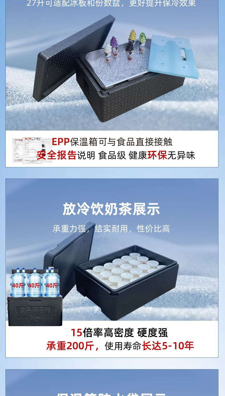 After the trip, EPP insulated box foam take-out refrigerated commercial stall cold food delivery outdoor vehicle-mounted ice cube sea fishing box gray 43L box (with hinge + handle + lock) high density insulated box