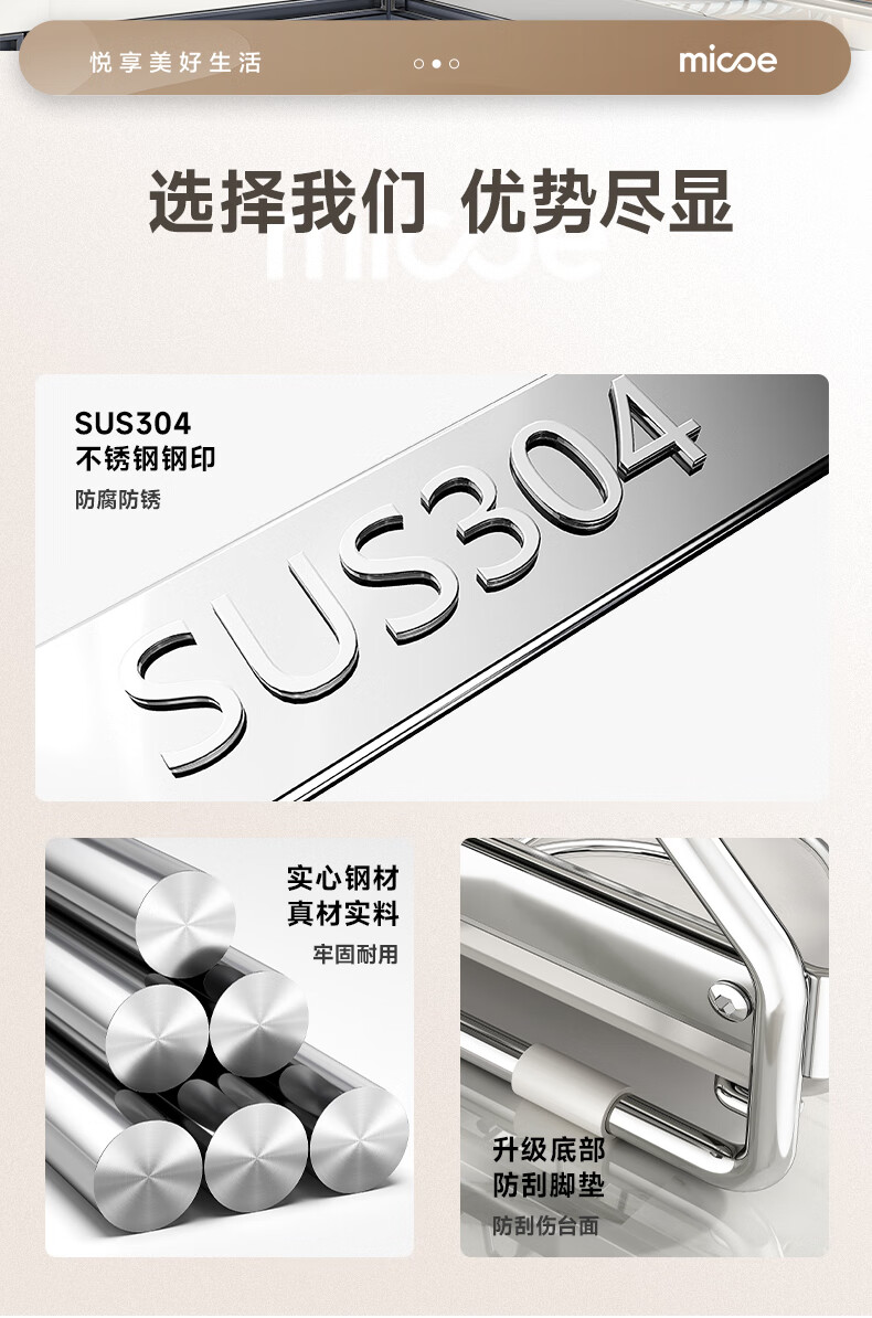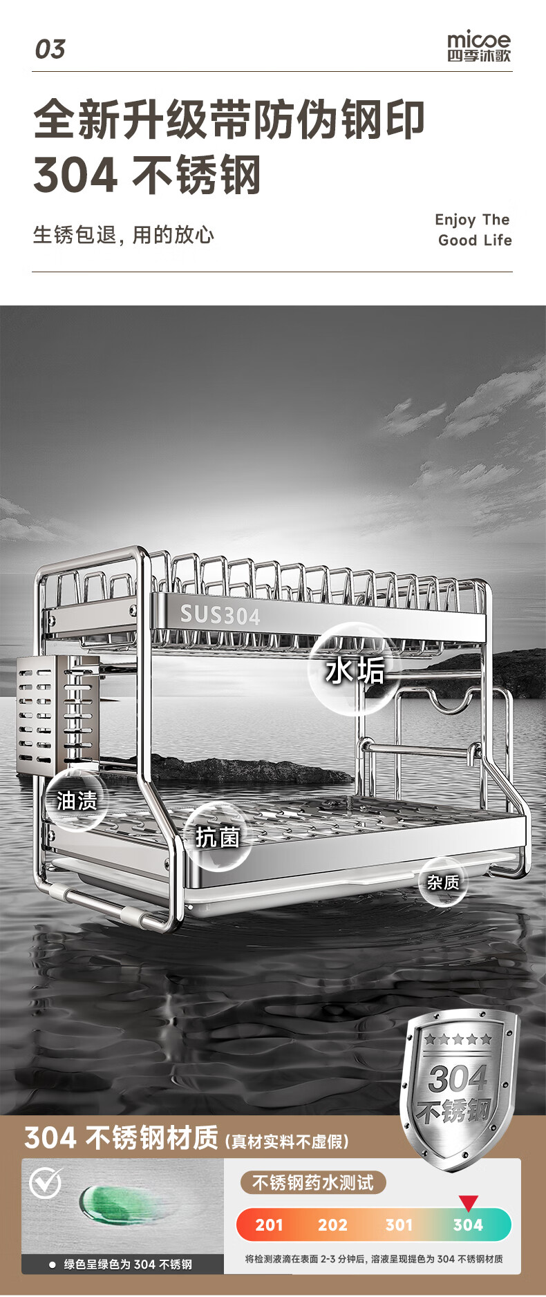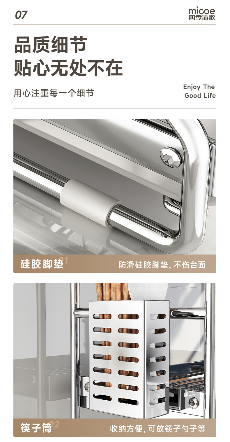 Four Seasons Muge 304 Stainless Steel Kitchen Storage Rack Drain Dish Rack Countertop Storage Cabinet Rack Knife Rack Bowl Dish Rack 304 Steel + Solid Thick Steel Pipe + 2-Layer Fully Equipped