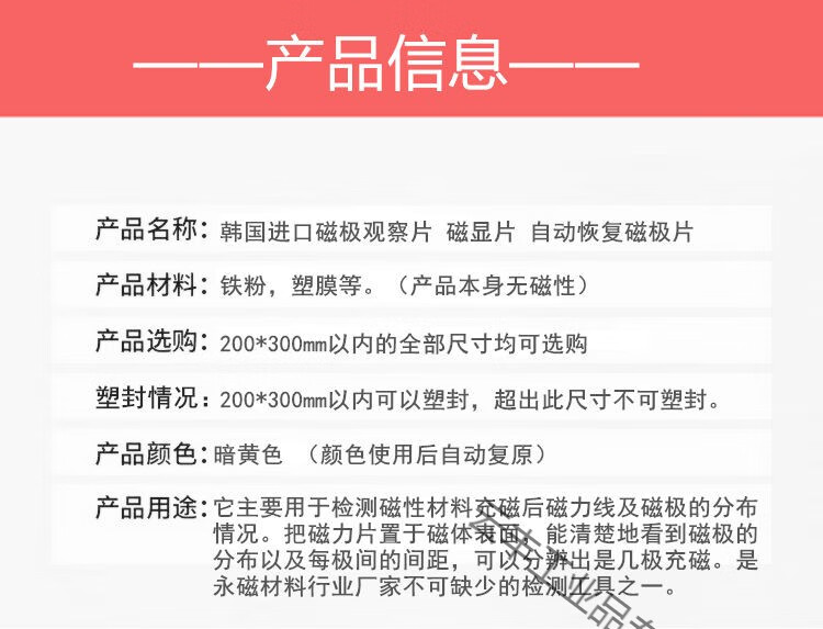 Traceless yellow magnetic pole observation film, magnetic measuring film, high-definition automatic recovery of magnetic display film, 50*50mm plastic package without border