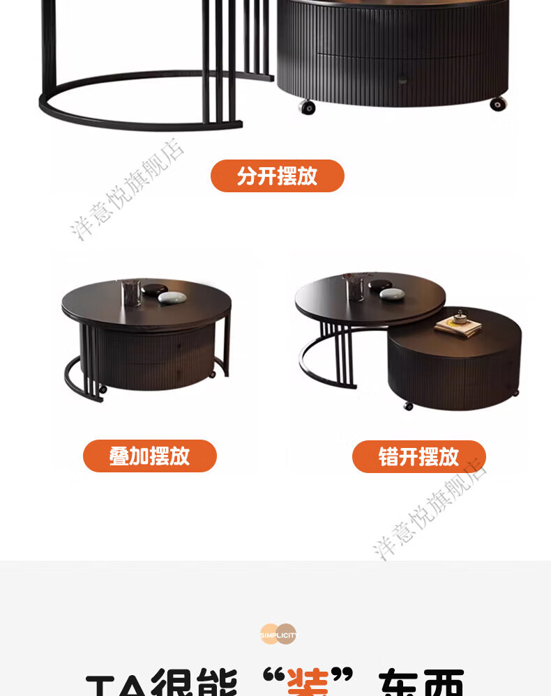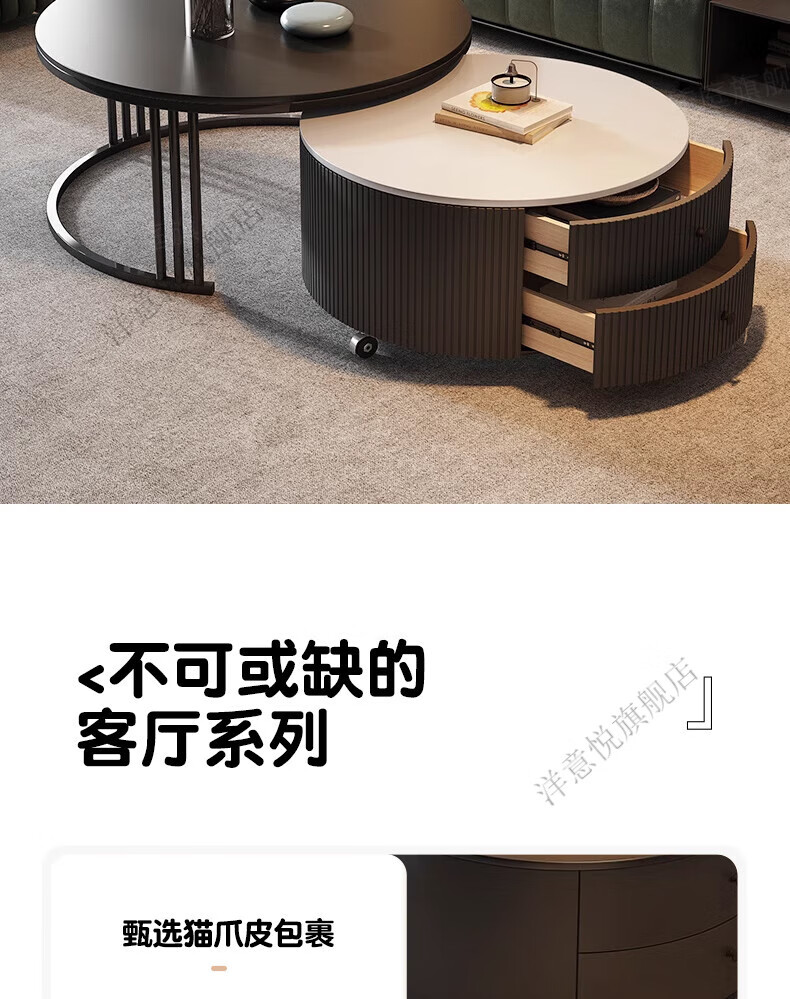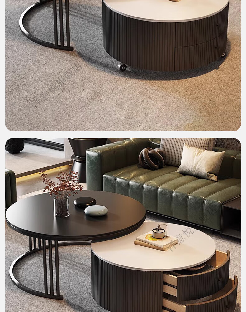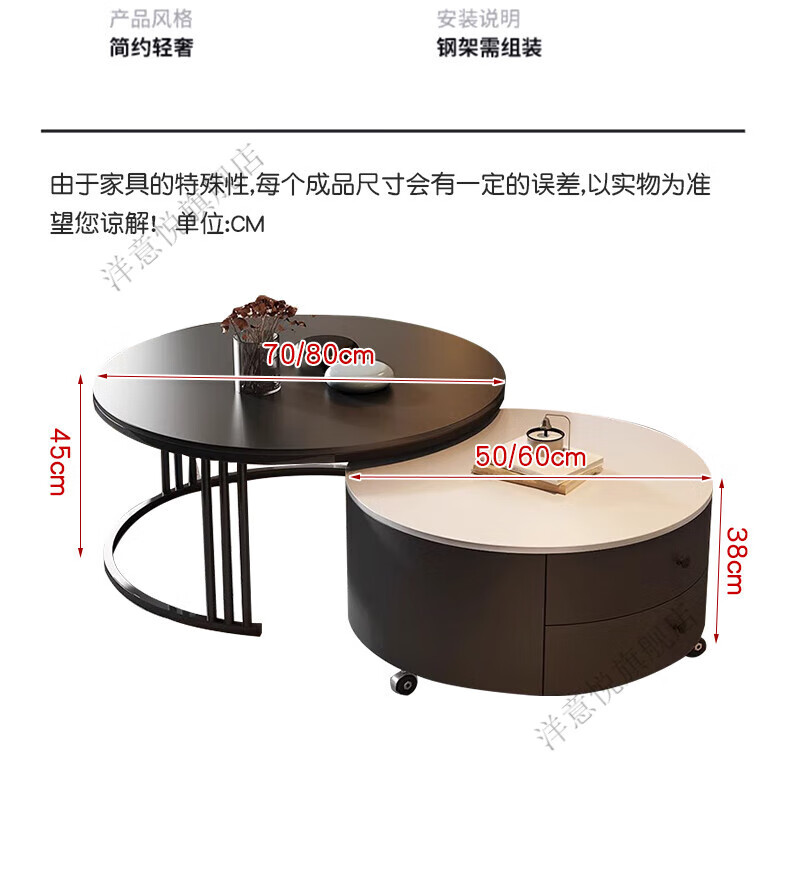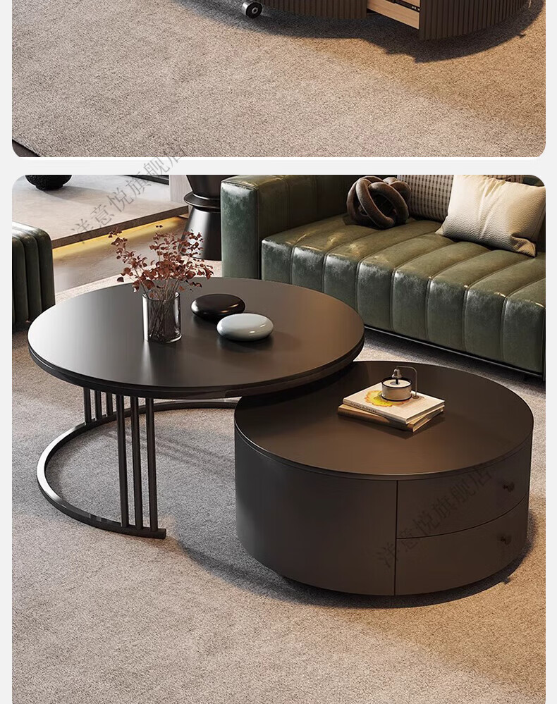 Yang Yiyue with universal wheel coffee table living room slate light luxury small apartment modern simple round small coffee table movable simple mobile universal wheel 60 white rock + black rock 70