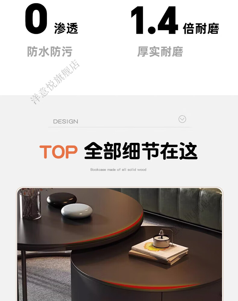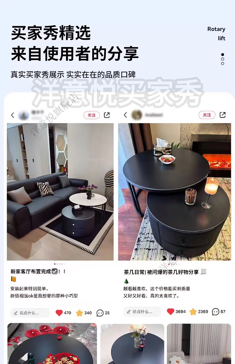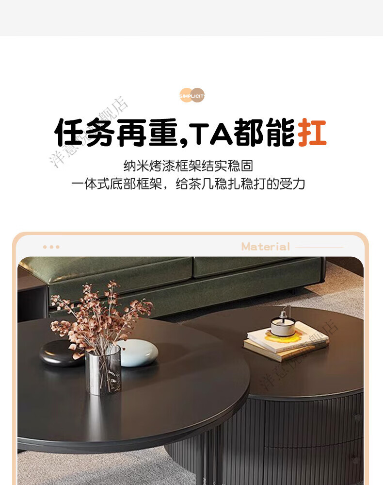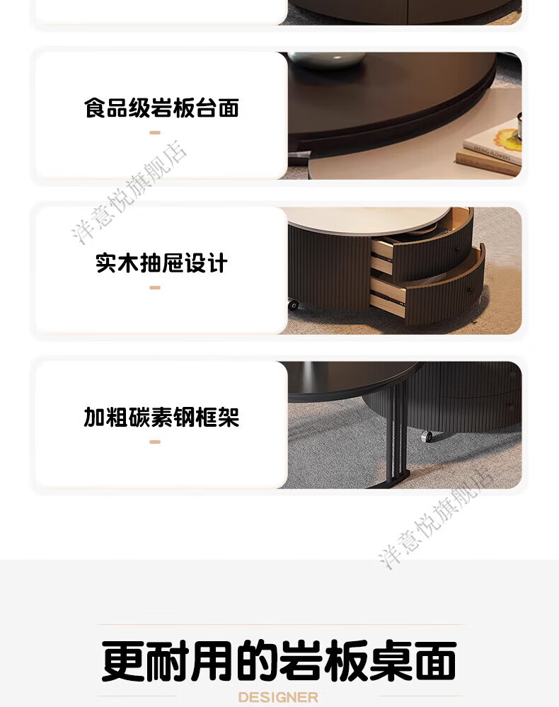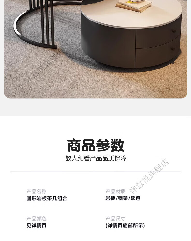 Yang Yiyue with universal wheel coffee table living room slate light luxury small apartment modern simple round small coffee table movable simple mobile universal wheel 60 white rock + black rock 70