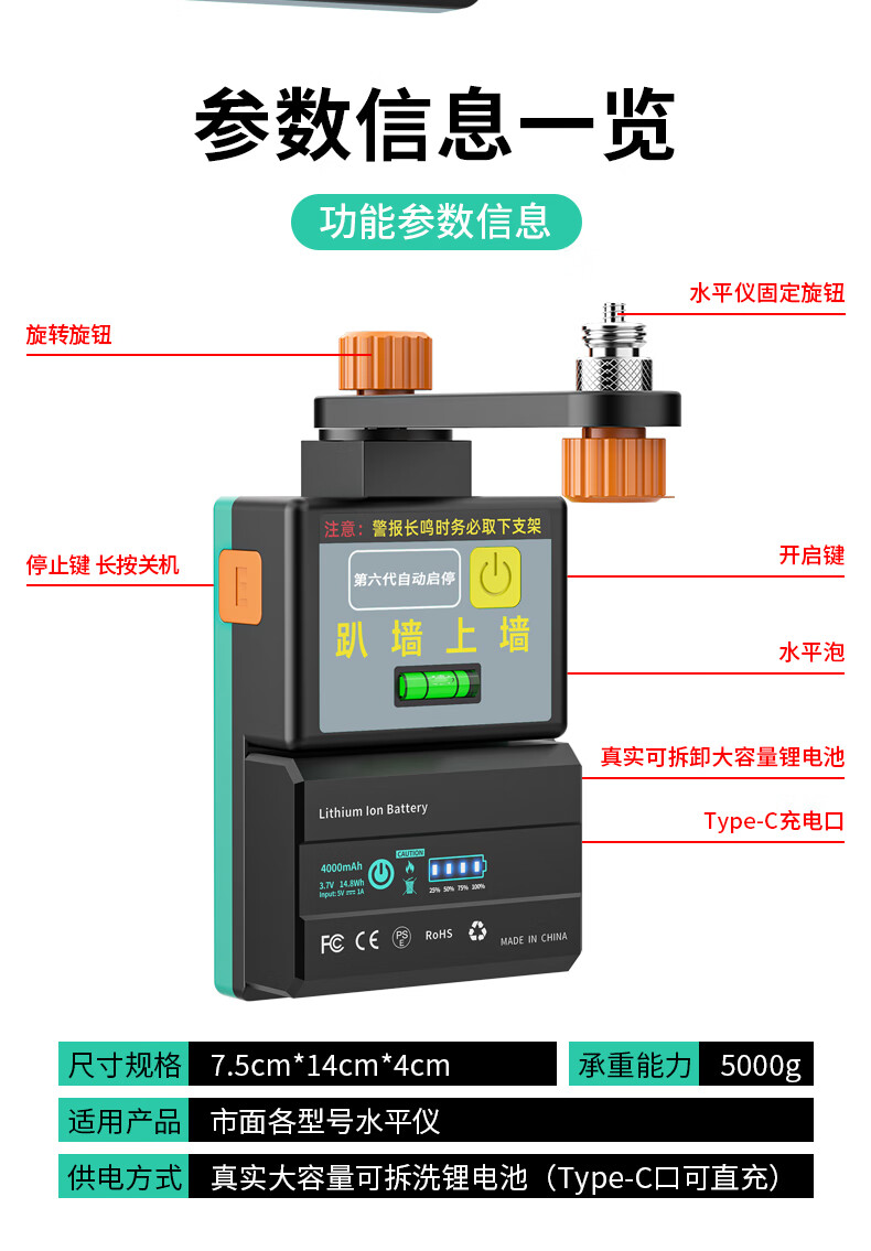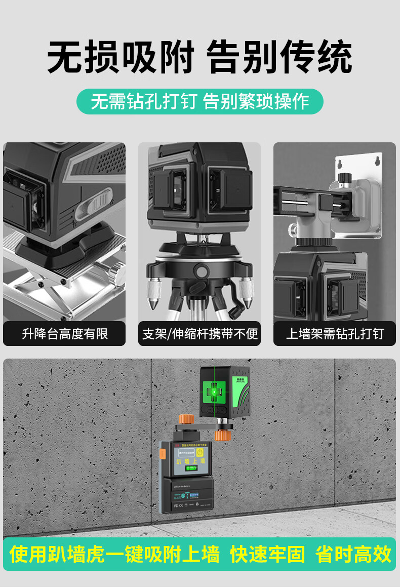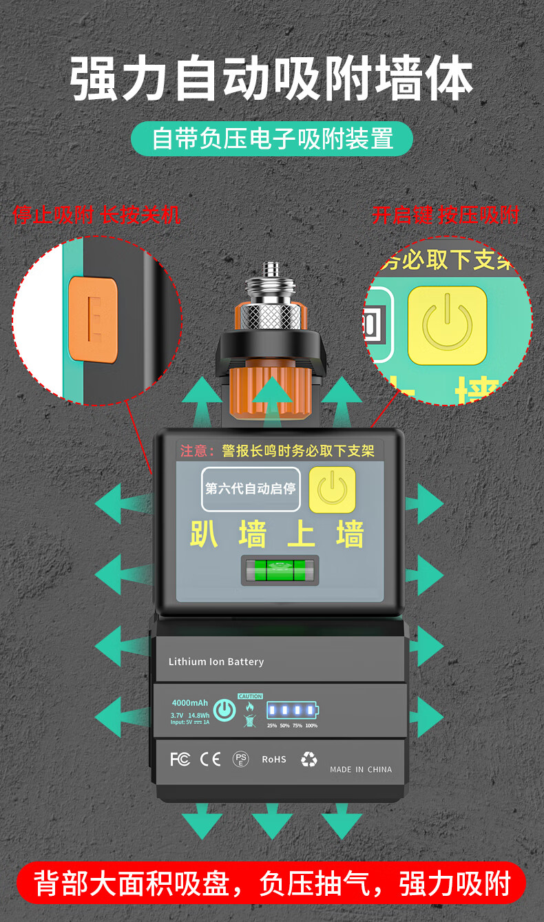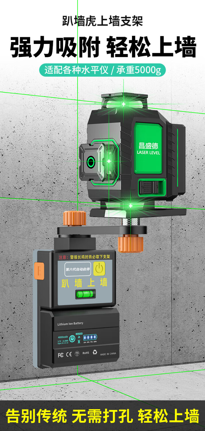 Changshengde wall climbing tiger level bracket set suction wall wall strong light infrared level meter no punching wall climbing tiger no punching bracket (no battery)