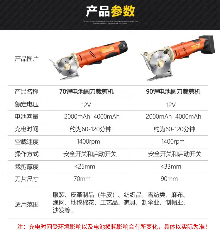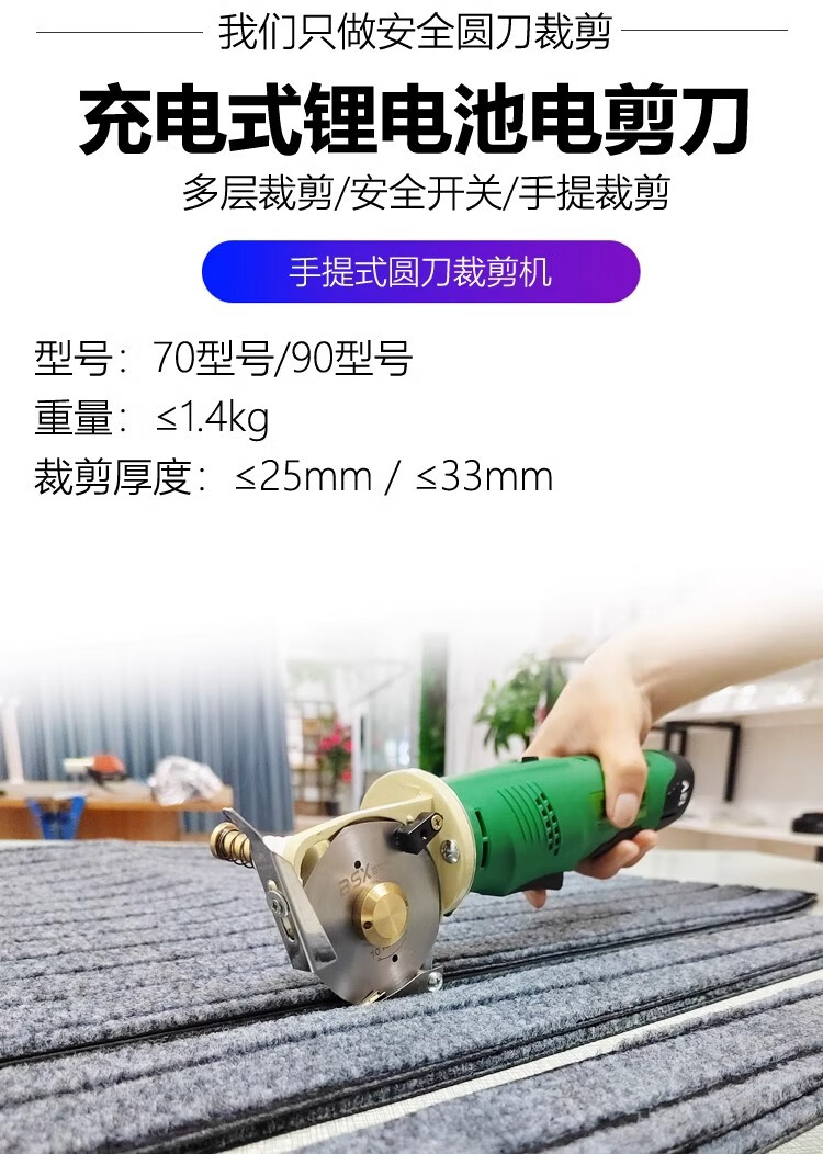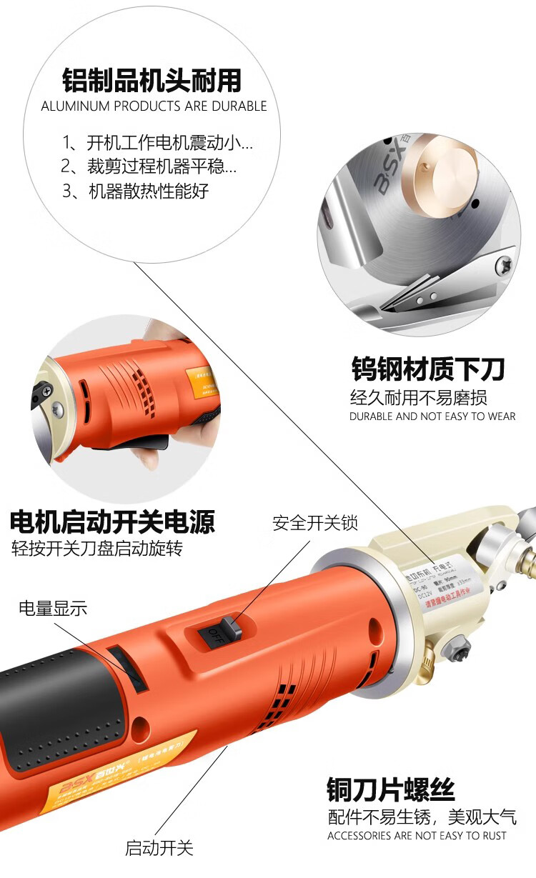 Baishixing round knife cutting machine rechargeable electric scissors for cloth cutting handheld clothing cloth cutting lithium electric cloth cutting machine scissors 70 models / 4000 mAh