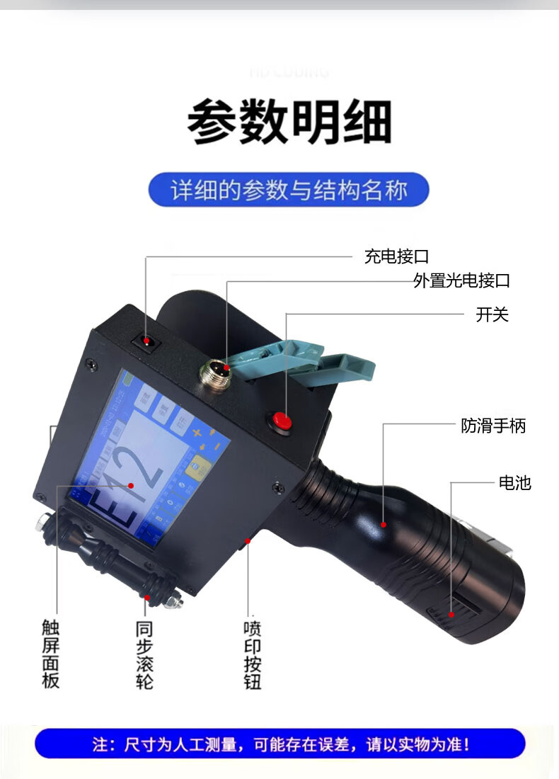 Baiyi large character inkjet printer 5cm7cm10cm handheld inkjet printer small fully automatic production date barcode QR code price label printer laser coder 25.4mm large character inkjet printer + original black ink cartridge