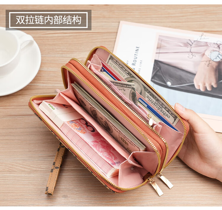 Woodpecker (TUCANO) 2026 new wallet women's European and American fashion women's clutch bag multi-card slot card bag double zipper mobile phone bag 306 double zipper blue