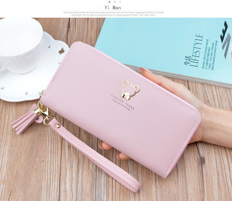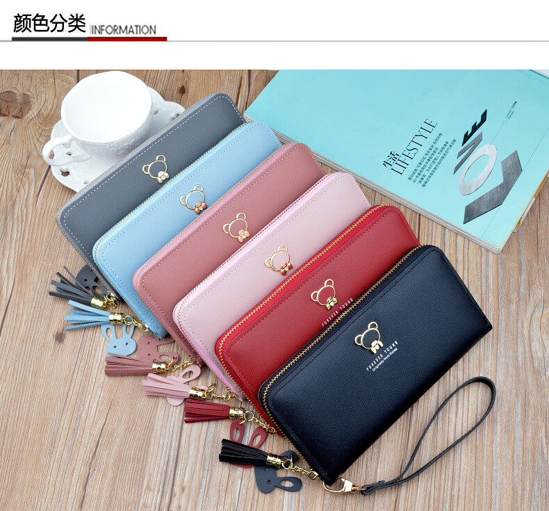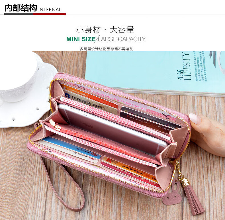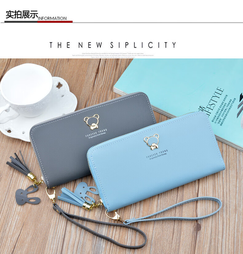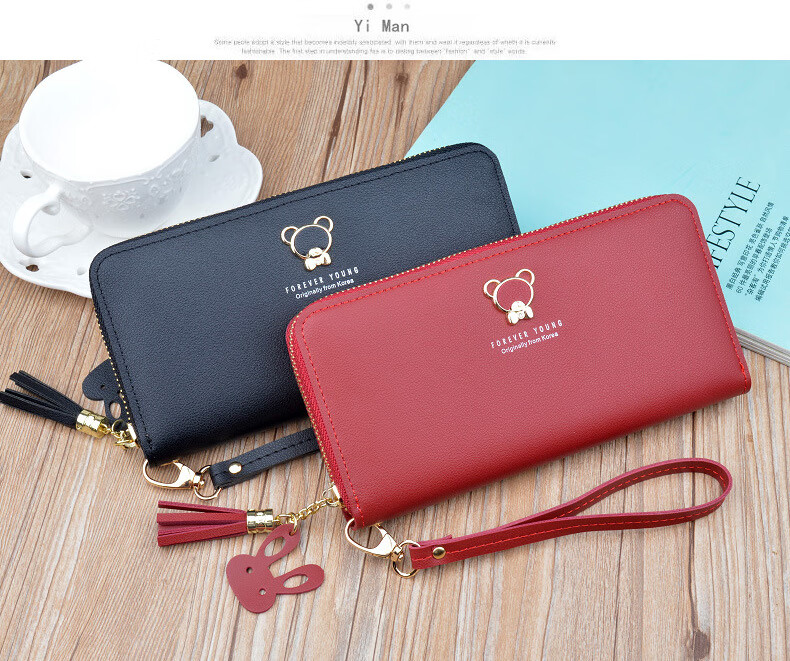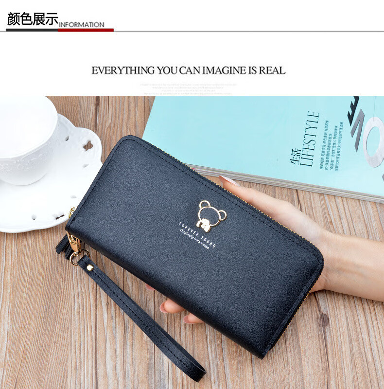 Woodpecker (TUCANO) coin purse young ladies long 2024 new small fresh wallet cute leather wallet zipper clutch clutch bag black