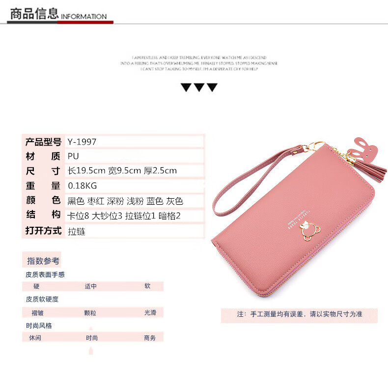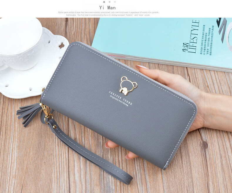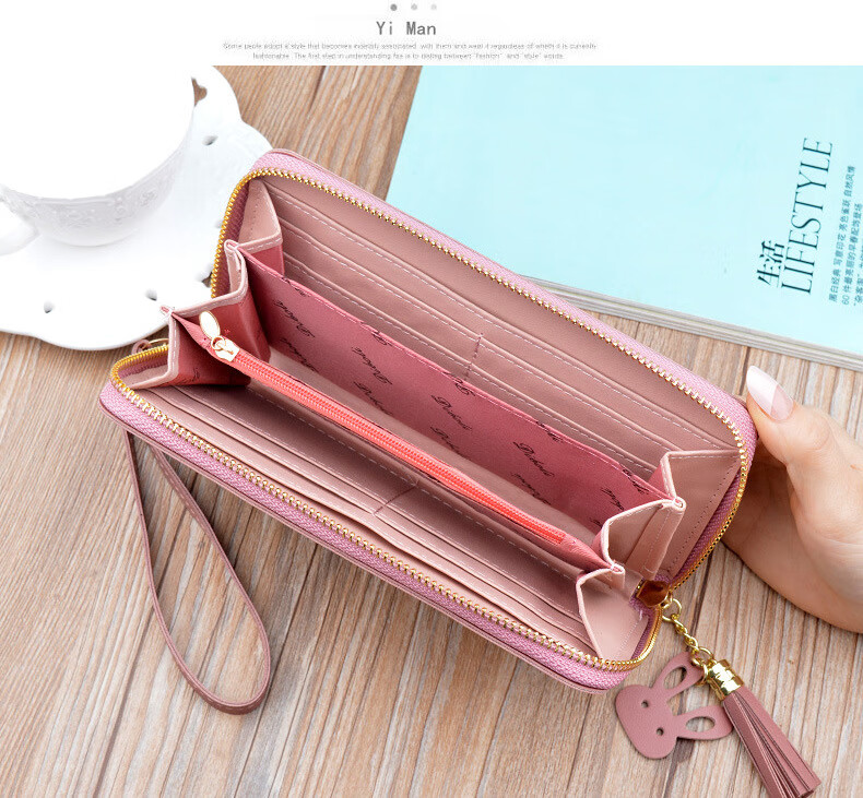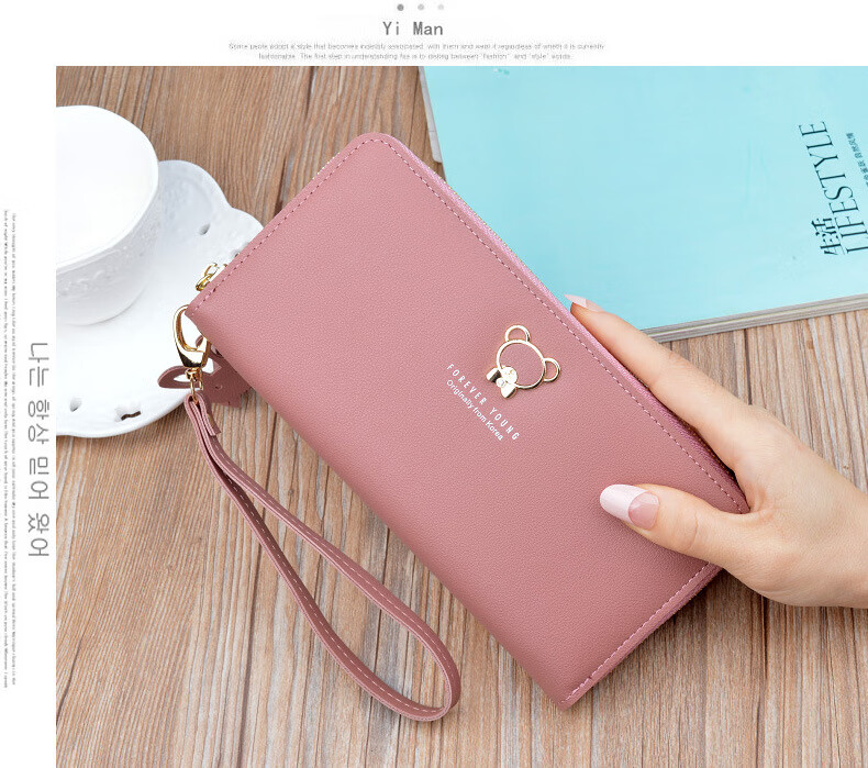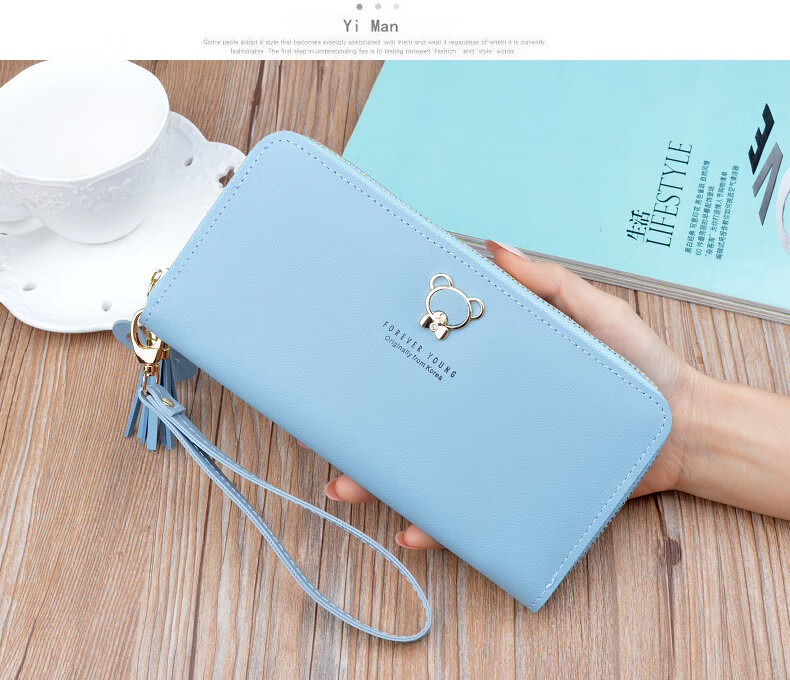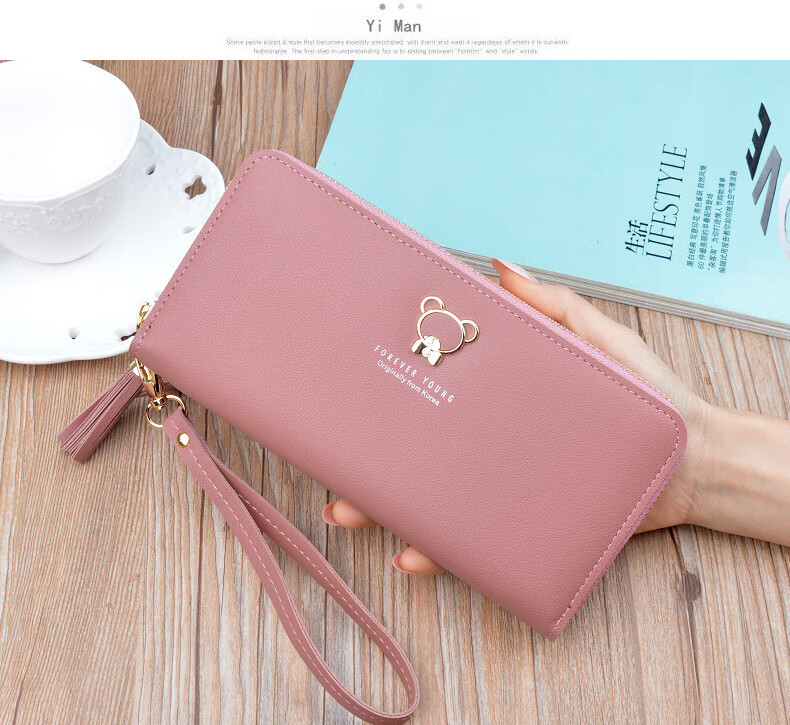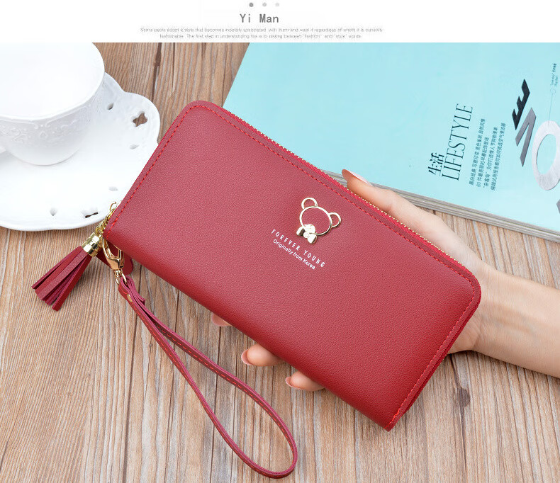 Woodpecker (TUCANO) coin purse young ladies long 2024 new small fresh wallet cute leather wallet zipper clutch clutch bag black