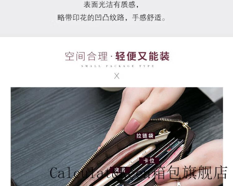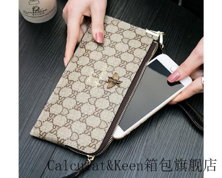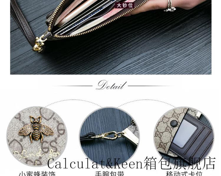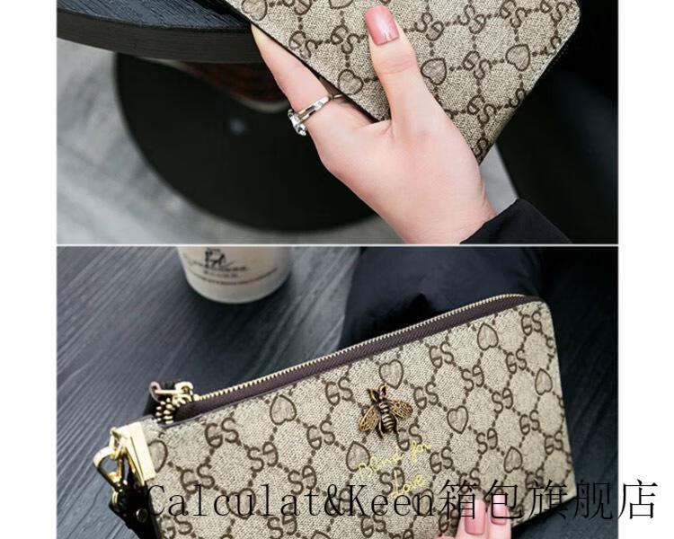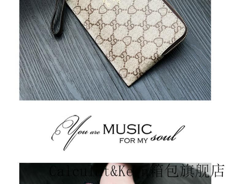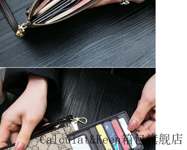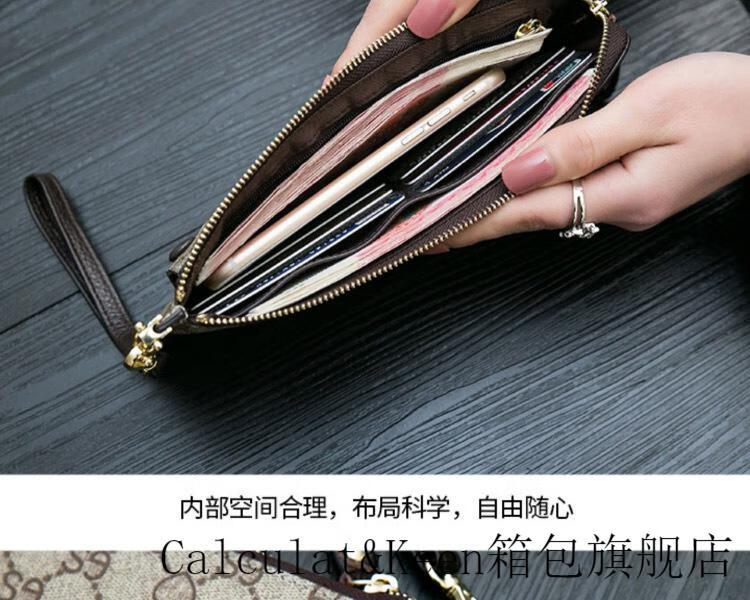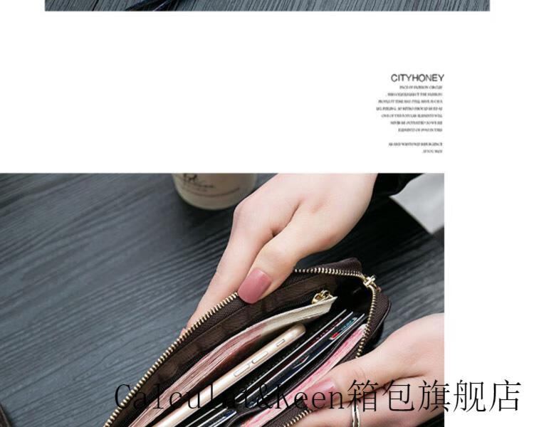 CALCULAT&KEENck wallet women's long 2024 new printed wallet women's multi-functional zipper large capacity card bag hand mobile phone bag brown