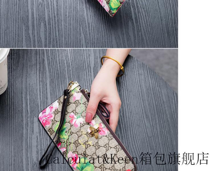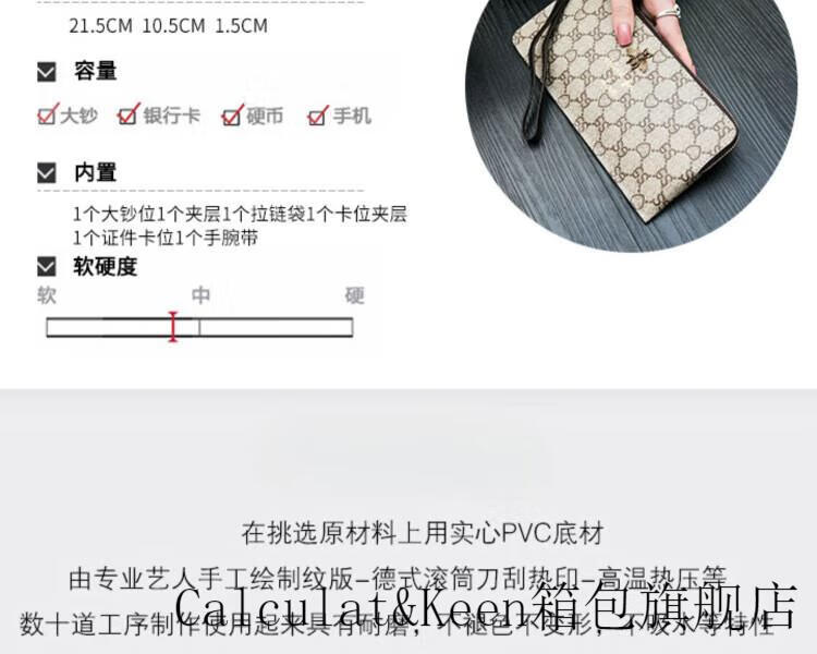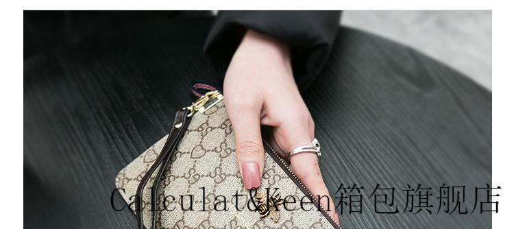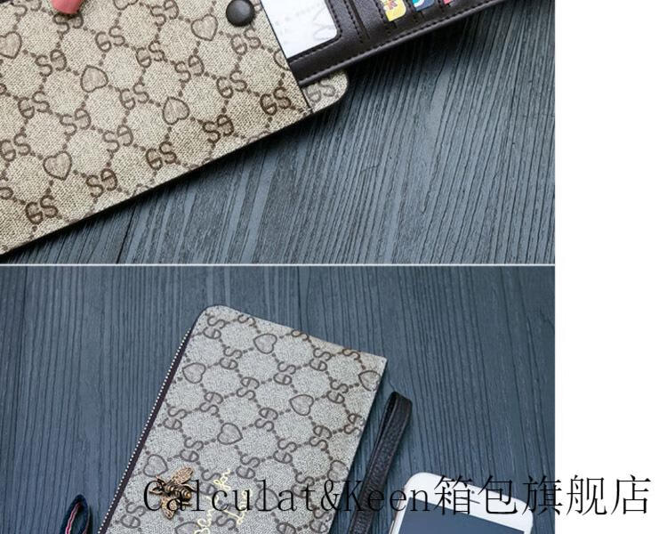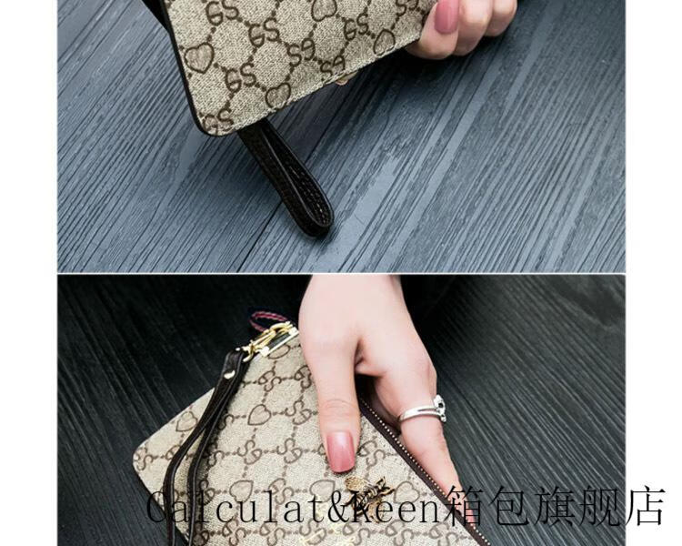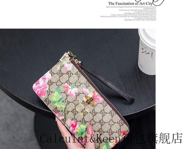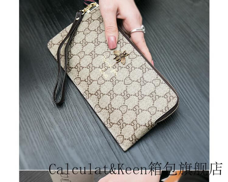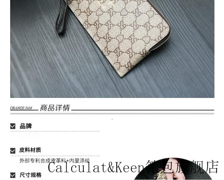 CALCULAT&KEENck wallet women's long 2024 new printed wallet women's multi-functional zipper large capacity card bag hand mobile phone bag brown