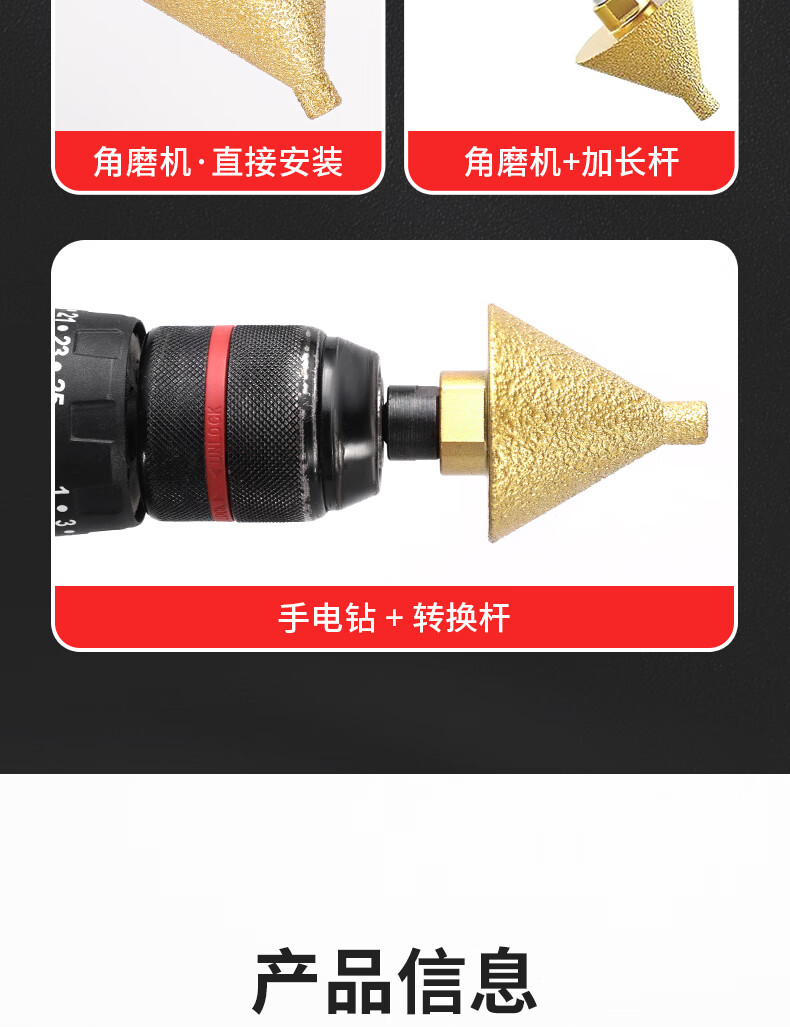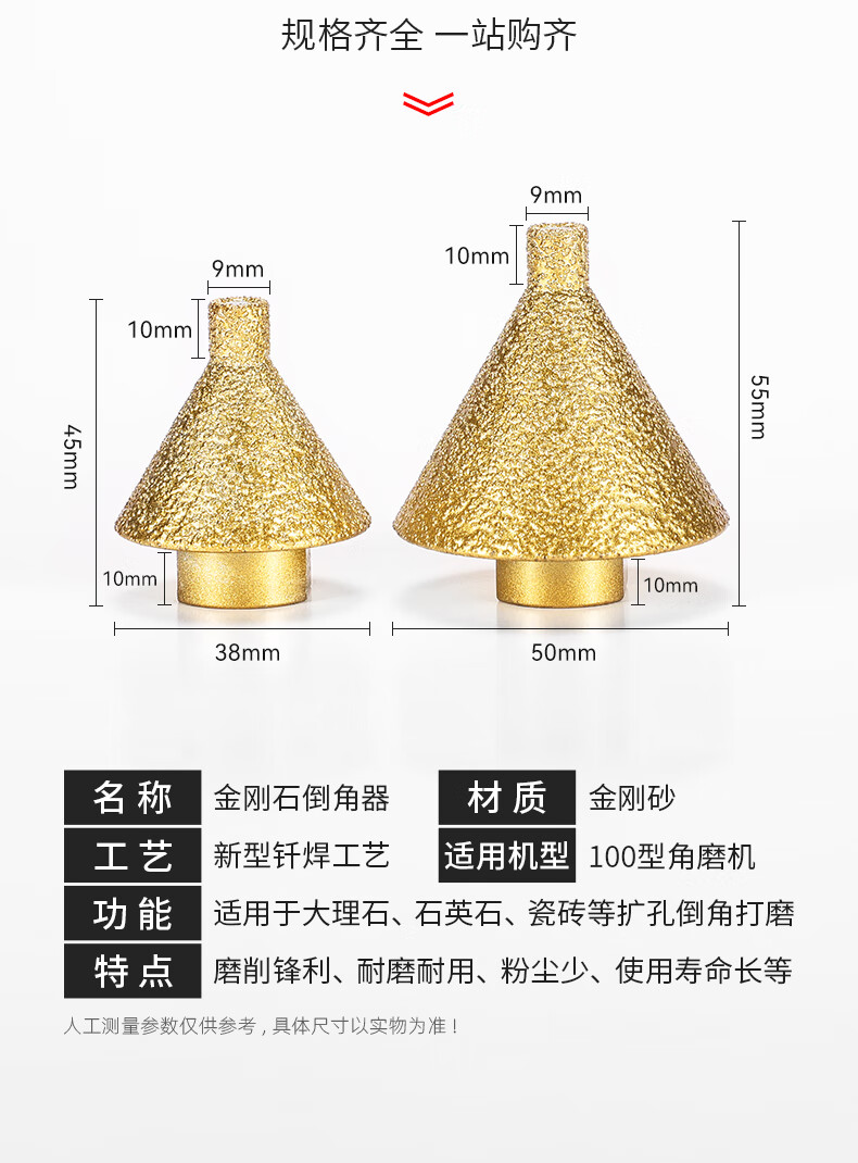 Niuxiang diamond chamferer, ceramic tile, marble stone, punching and reaming drill bit, stone hole opener, tapered umbrella grinding head, upgraded diamond chamferer, large size 2 pack