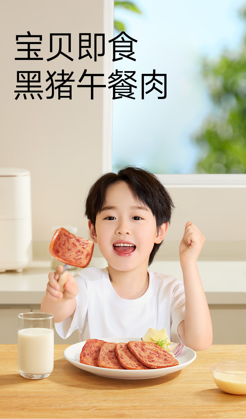Fujibaby Black Pig Luncheon Meat, Ham and Sausage with Additive-free Breakfast Snacks for One-Year-Old Children High-Protein Black Pig Luncheon Meat*3