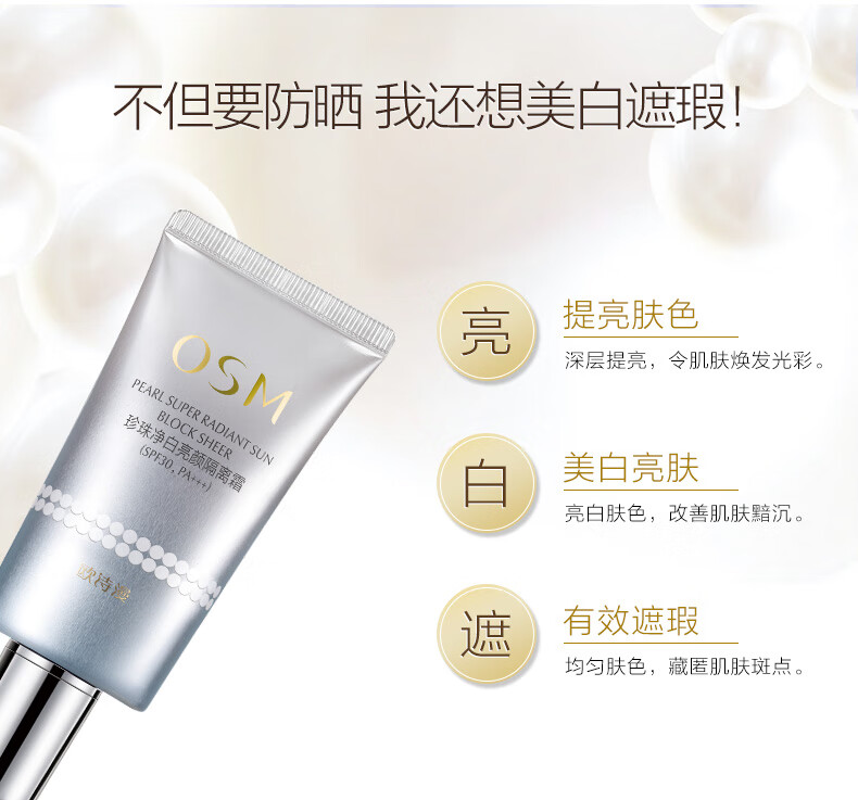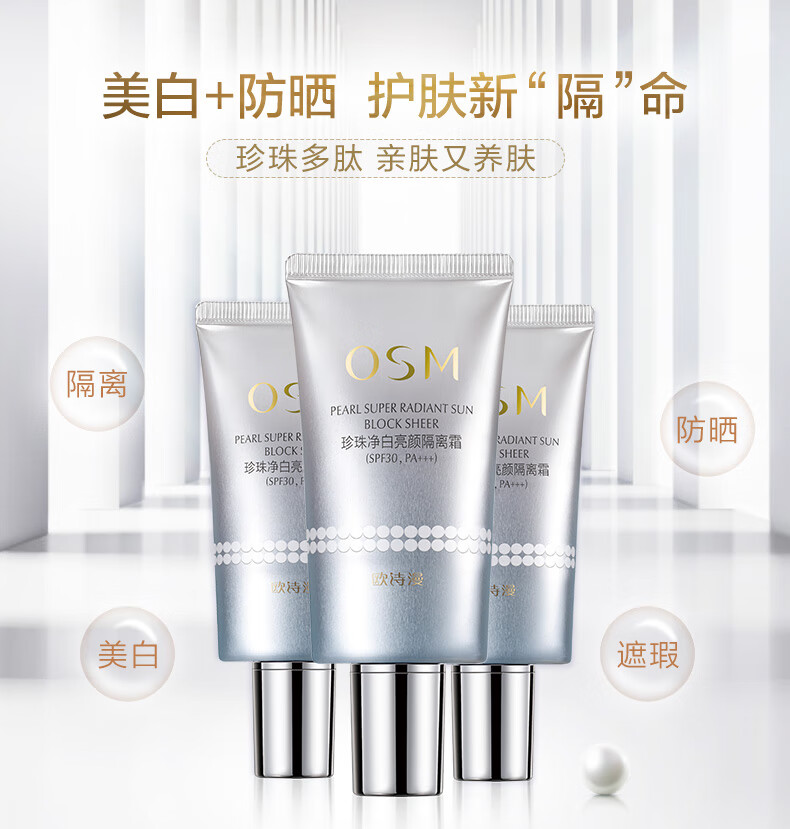Oshiman Pearl Whitening and Brightening Isolating Sunscreen Cream Sunscreen, Whitening and Concealer Three-in-One Makeup Primer and Brightening Skin Care Products for Women Whitening and Brightening Isolating Cream 40g