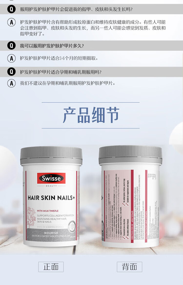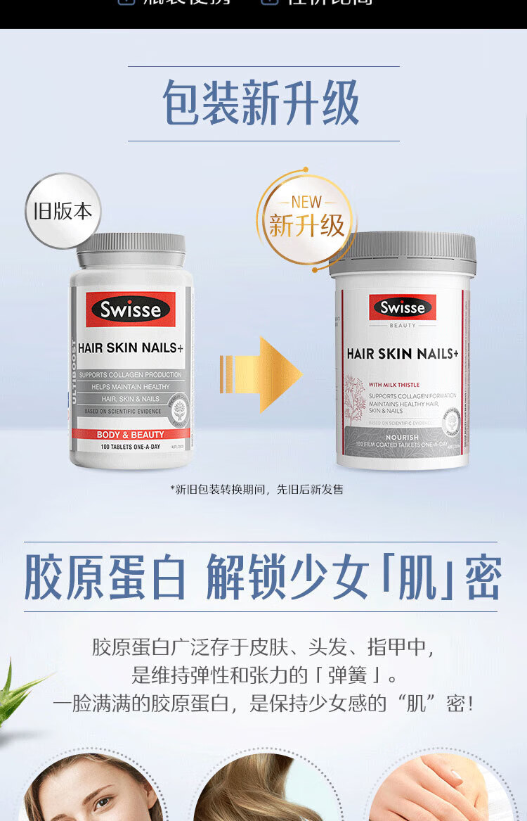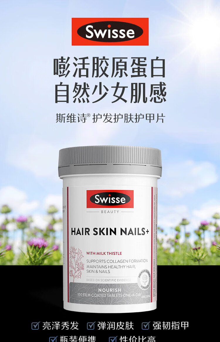 Swisse Collagen Tablets for hair care, skin care and nail care, blood orange nourishes the skin, nourishes Qi and blood, maintains healthy nails, hair and skin, imported from Australia, skin care and nail care, collagen tablets 100 tablets*1 bottle