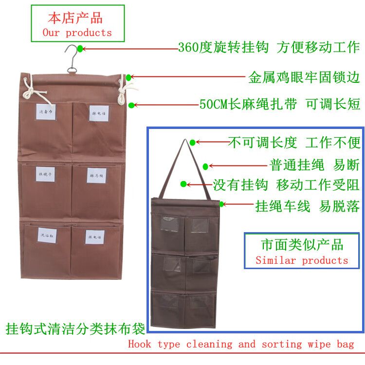 Linen bag hanging storage bag miscellaneous bag work cart rag bag hanging bag cleaning cart linen cart classification rag bag hook horizontal 6-port classification rag bag style