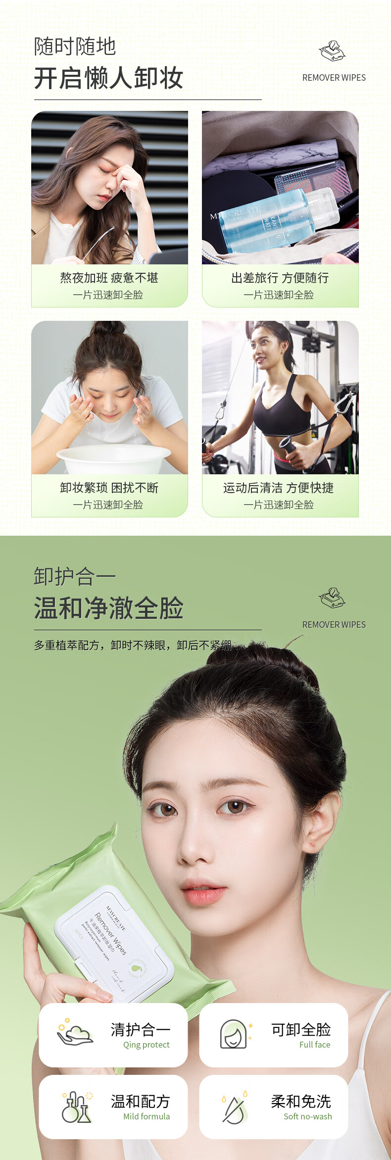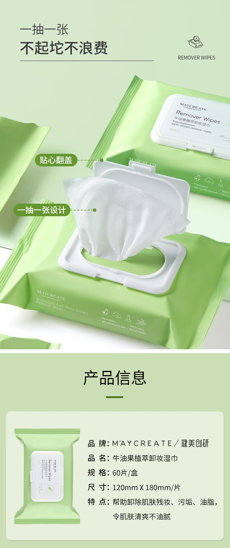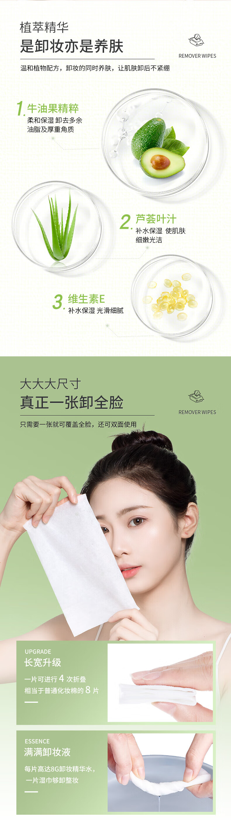 Bodybuilding Chuangyan Avocado Plant Extract Makeup Remover Wipes Gentle and Non-irritating Deep Cleansing Disposable Eye and Lip Remover New Avocado Makeup Remover Wipes 60 pieces 2 boxes