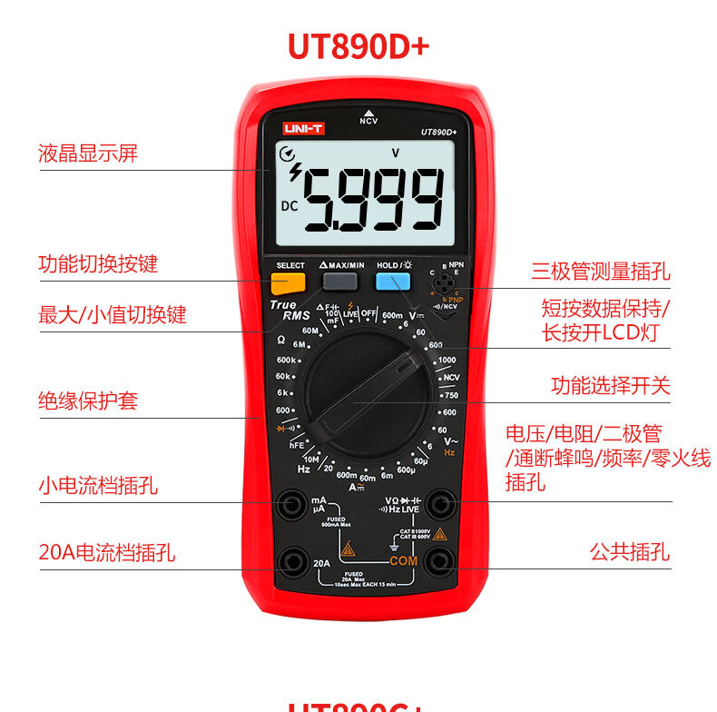Uliide digital multimeter high-precision electrician repair smart multimeter anti-burn UT136B+/UT33B+/UT890+ UT136C+ (temperature measurement)