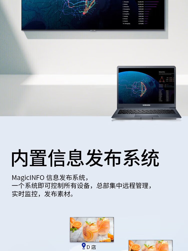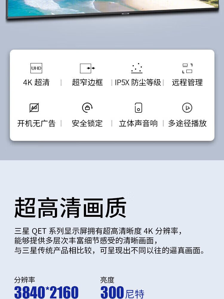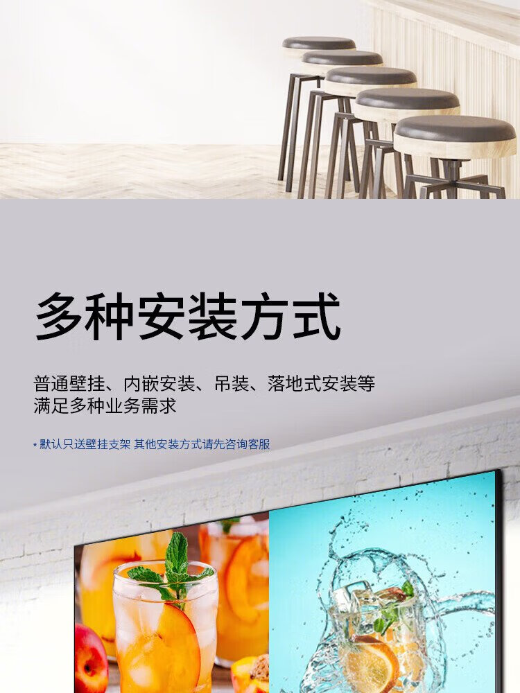 Samsung (SAMSUNG) 4K ultra-clear HDR large screen wall-mounted conference TV smart super LCD digital signage no ads on startup built-in audio free door-to-door installation 55-inch 4K large screen