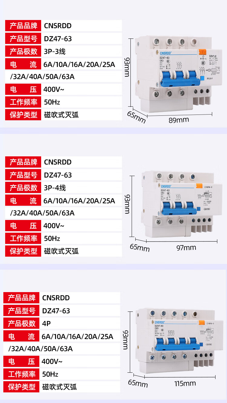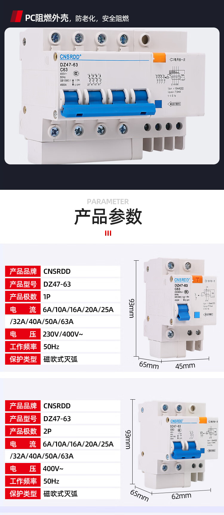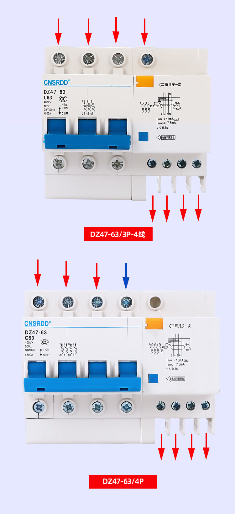 Shanghai People's Action Current 15mA High Sensitive Leakage Circuit Breaker DZ47LE 1P2P3P16A 6A 1P+N