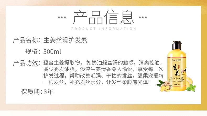 MCHUN Ginger Conditioner Conditioner Conditioner Hair Mask Baked Oil Cream Hair Care Essential Oil Hair Care Moisturizing Refreshing and Smooth Ginger Conditioner 300ml 1 bottle